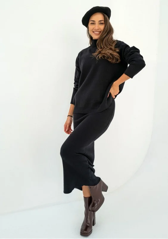 Malte - Black knitted midi skirt