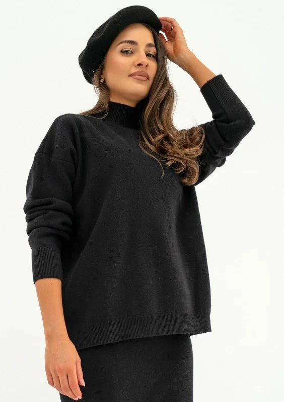 Malte - Black knitted polo neck sweater