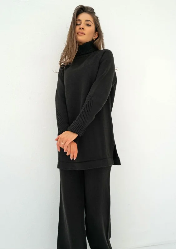 Malte - Black knitted polo neck sweater