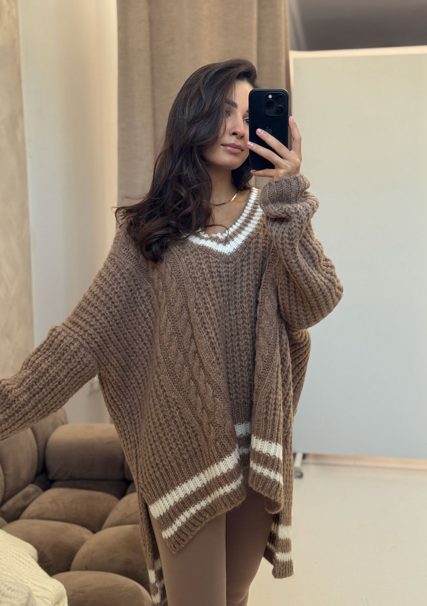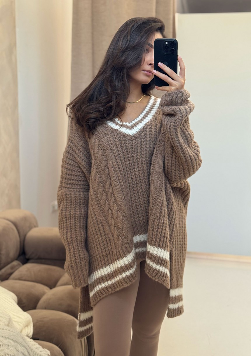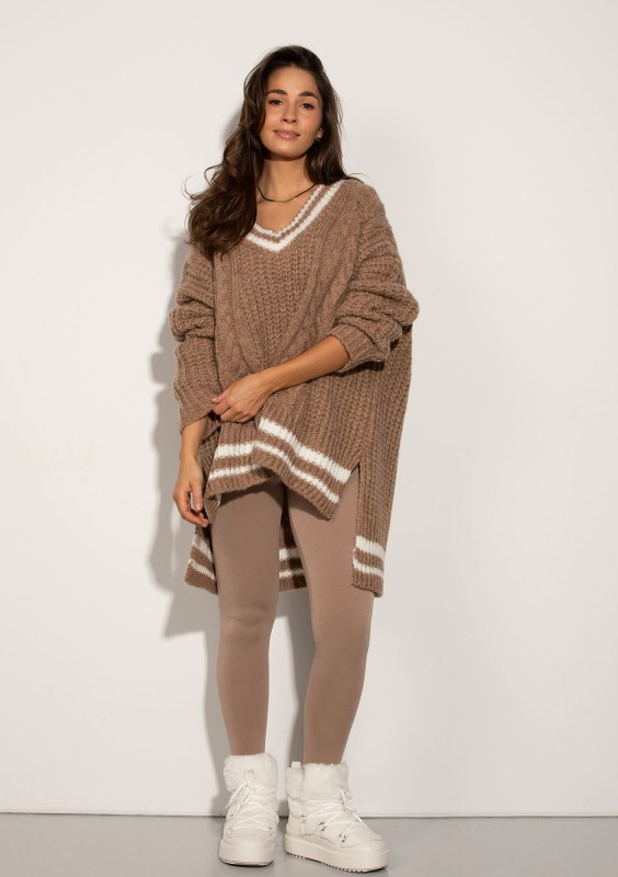 Varley - Long oversized brown striped sweater