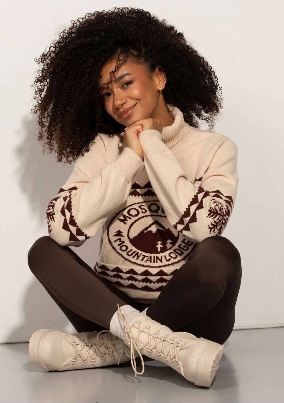 Lodge - Ecru sweater with a jacquard pattern "mountain"