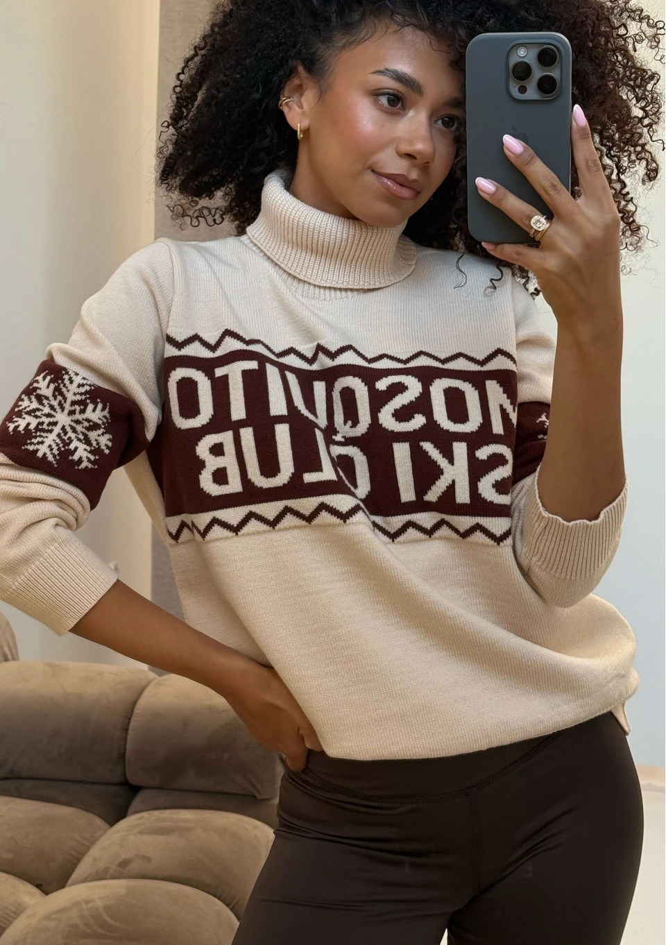 Lodge - Ecru sweater with a jacquard pattern "ski club"