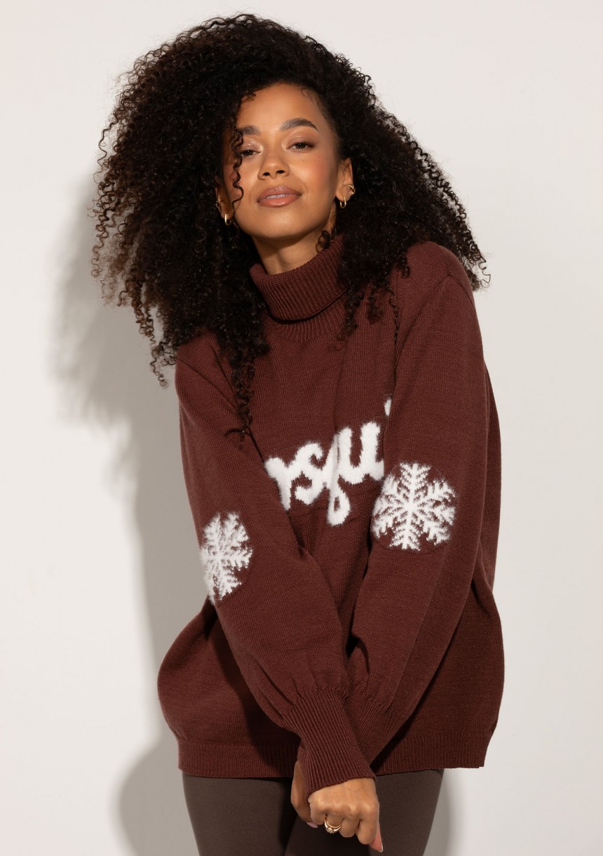 Flurry - Brown sweater with a fluffy logo and snowflakes