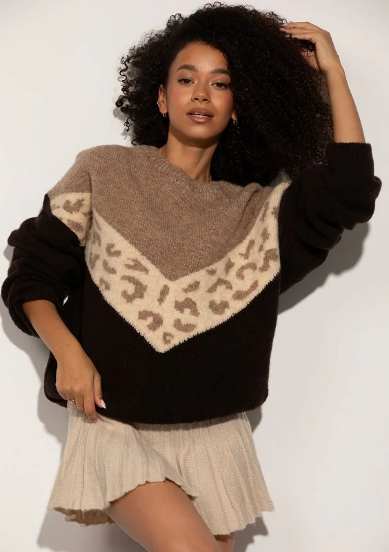 Wild V - Soft tricolored sweater with a subtle leopard pattern