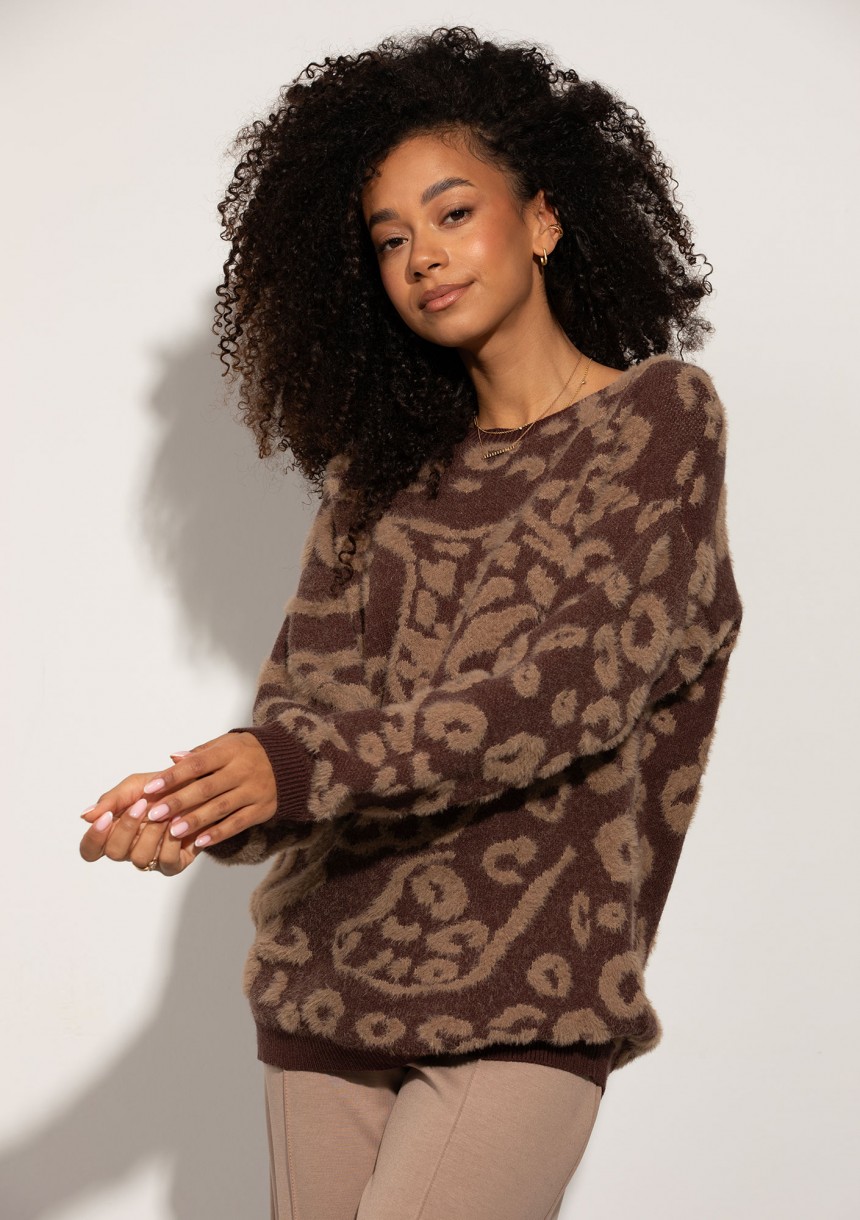 Wilder - Brown sweater with a subtle animal pattern