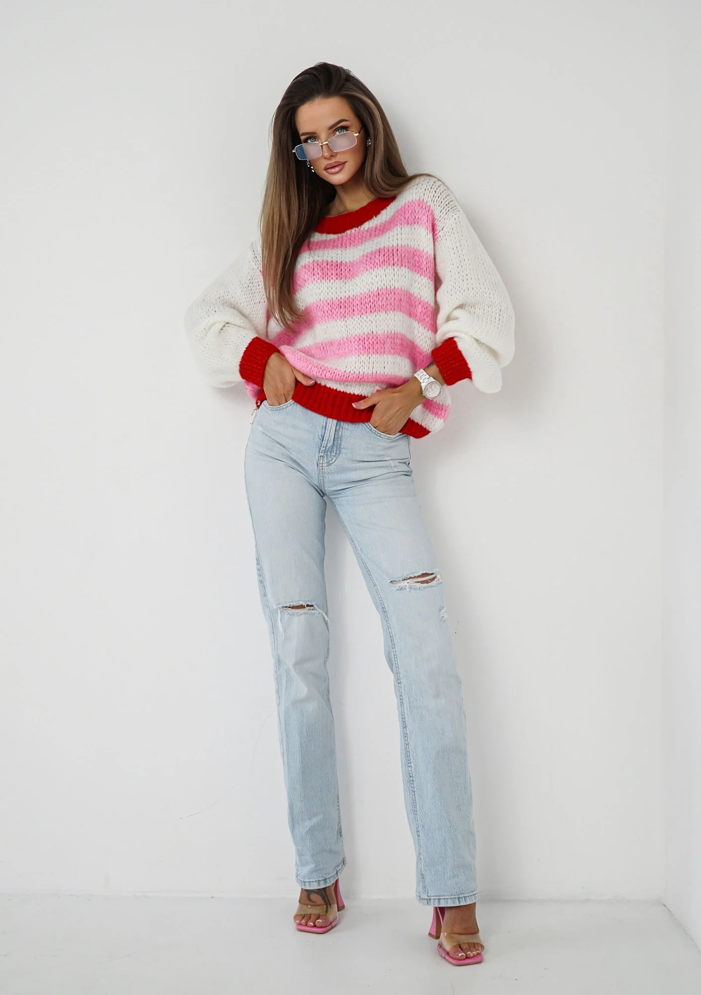 Candy Knit - Light knitted sweater with pink stripes