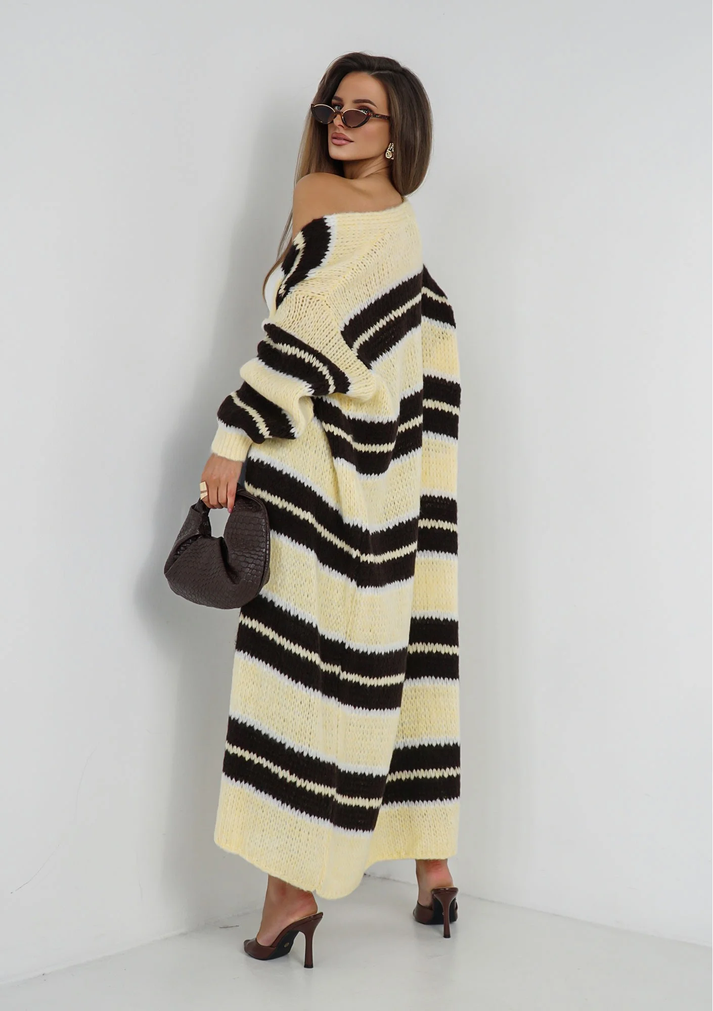 Marin - Yellow striped knit maxi cardigan