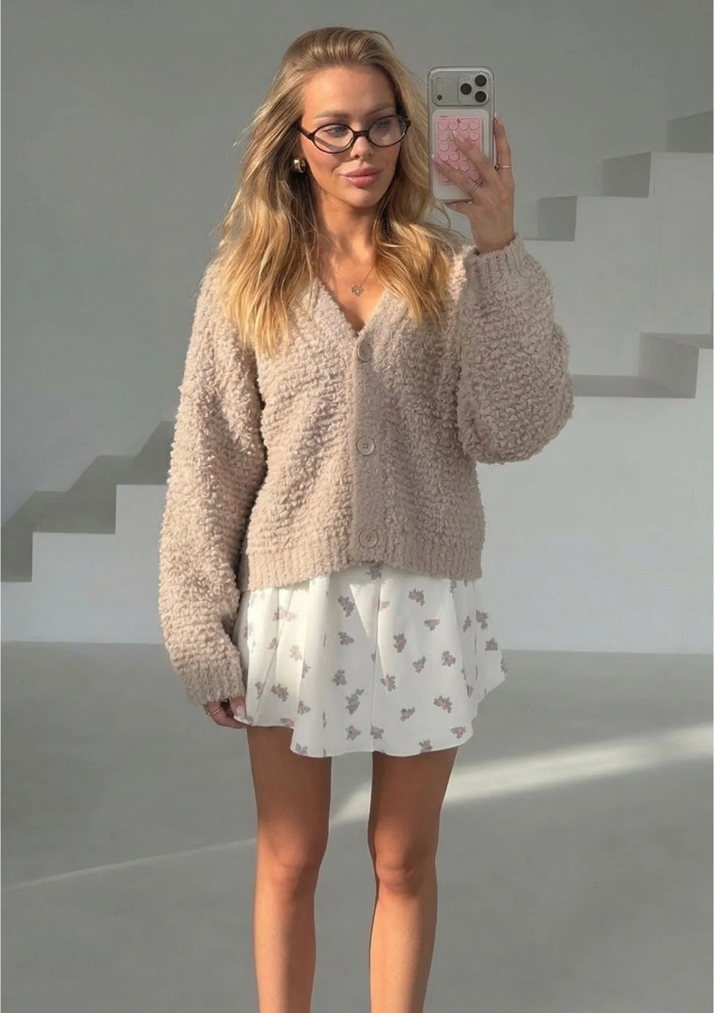 Lumie - Beige fluffy boucle cardigan