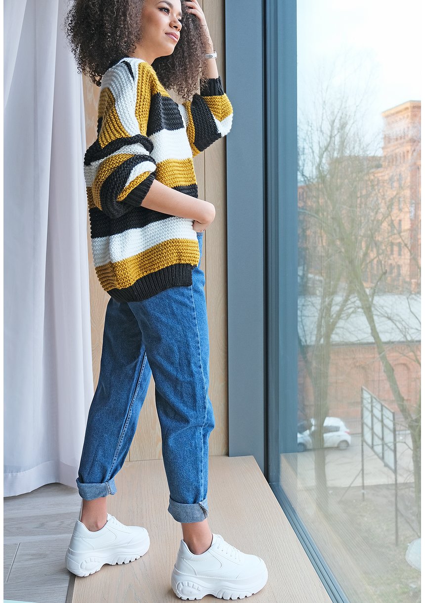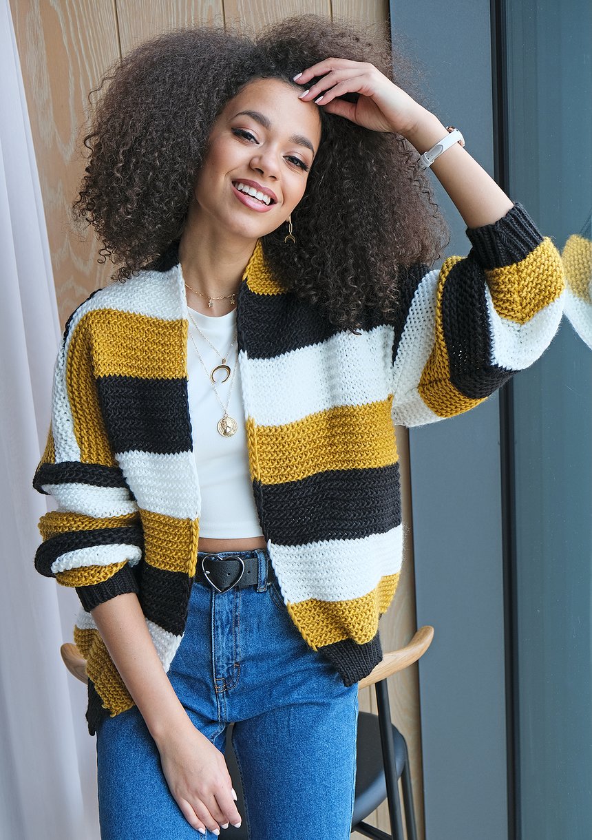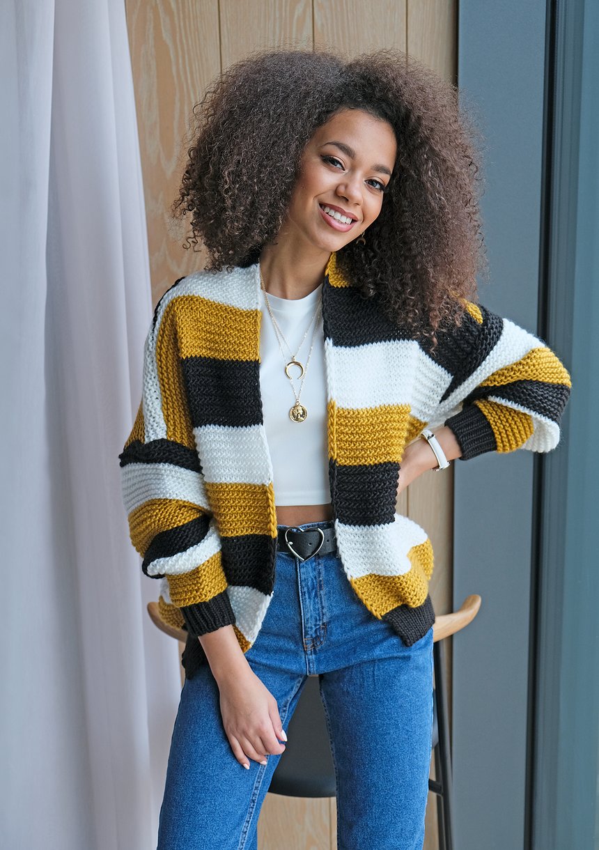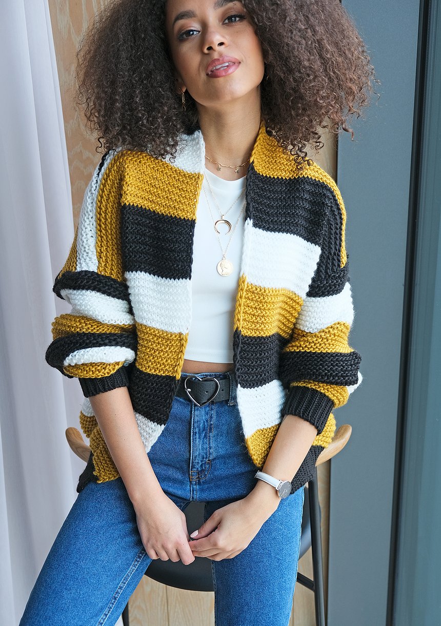 MUSTARD STRIPE CARDIGAN WITH WOOL A47 ILM
