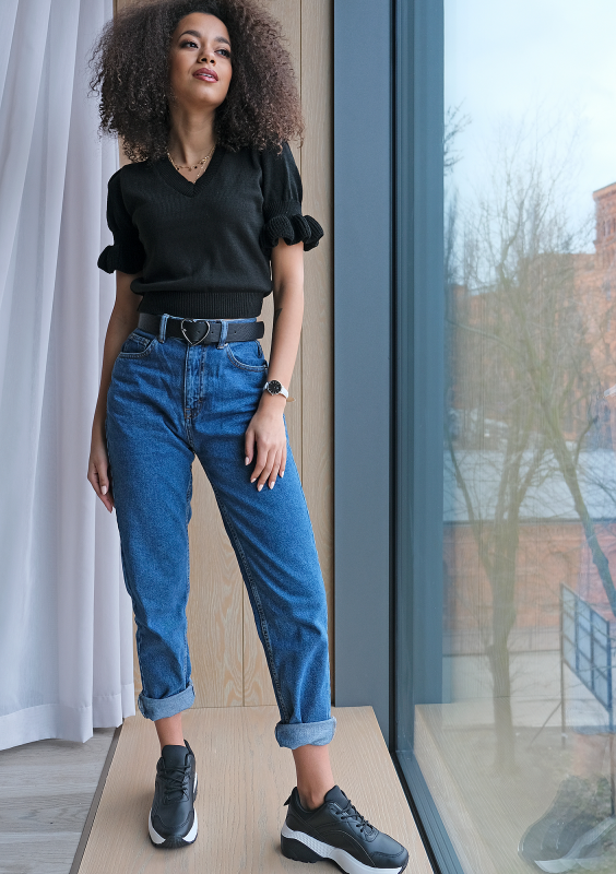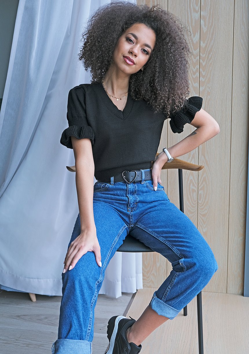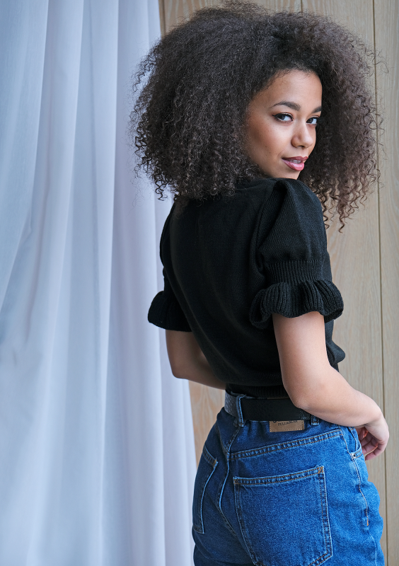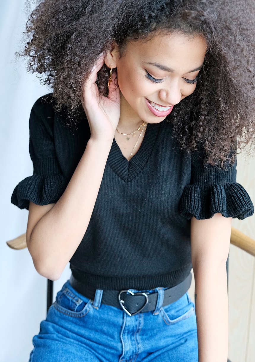 BLACK CROPPED SWEATER WITH RUFFLES A51 ILM