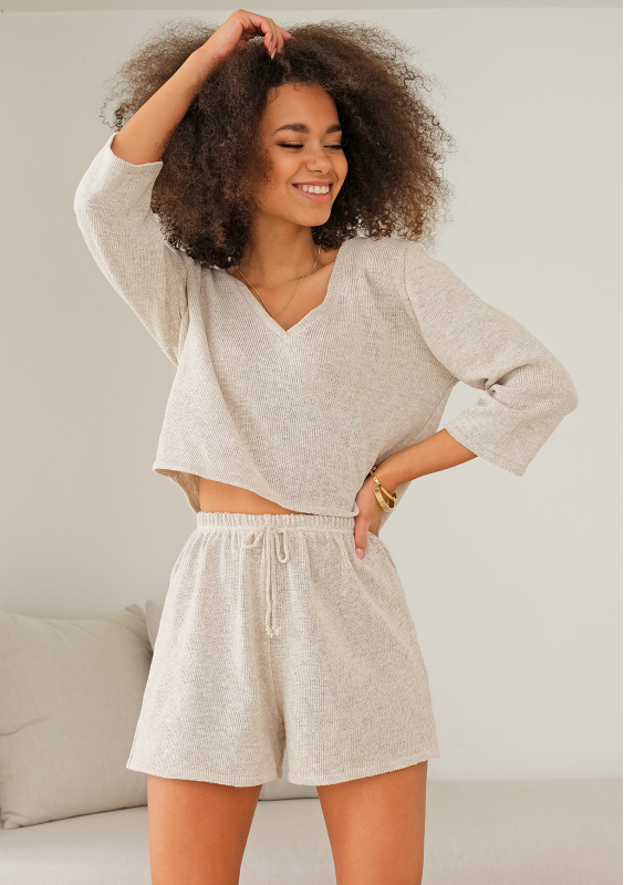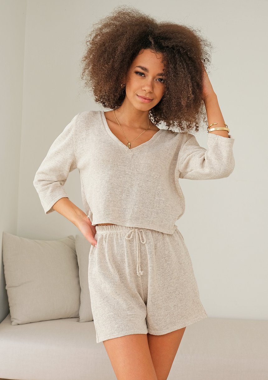 Celine - Short ecru knitted top