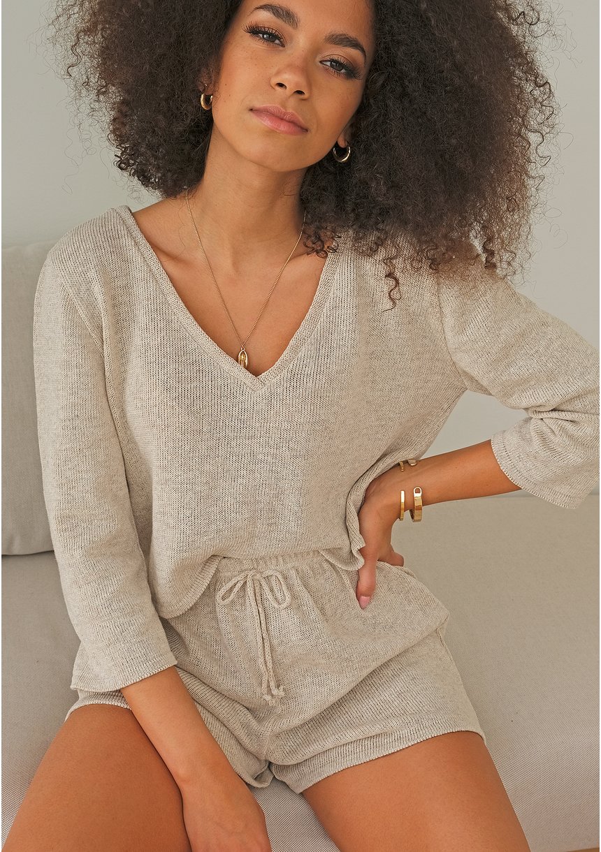 Lotti - beige cotton v-neck sweater
