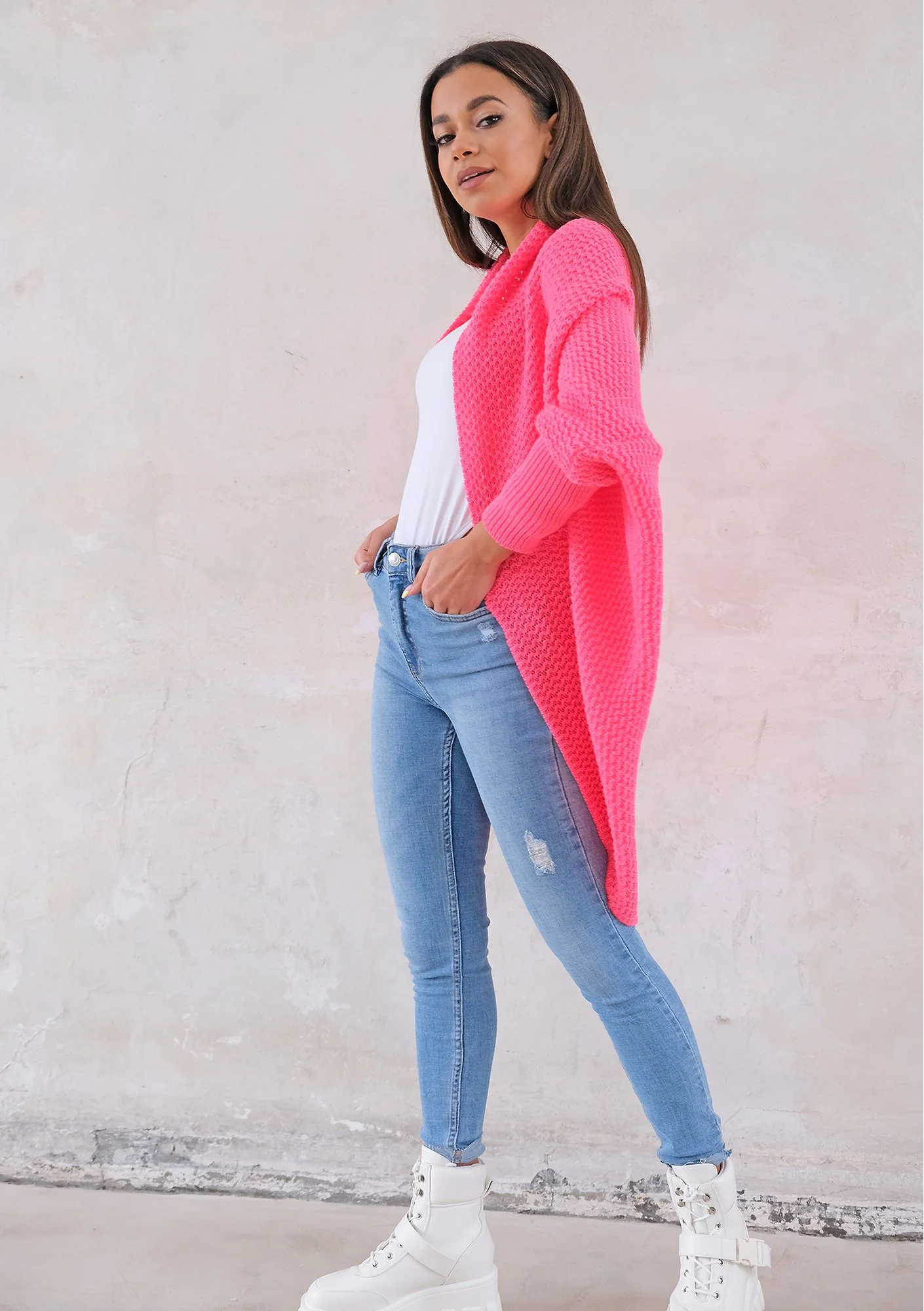 Vila - neon fuchsia oversized cardigan
