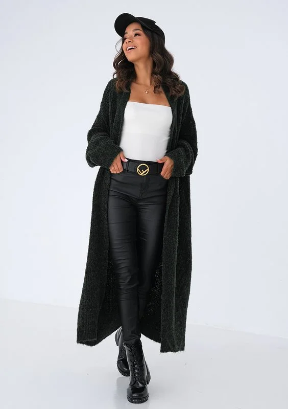 Lora - long beige checked cardigan