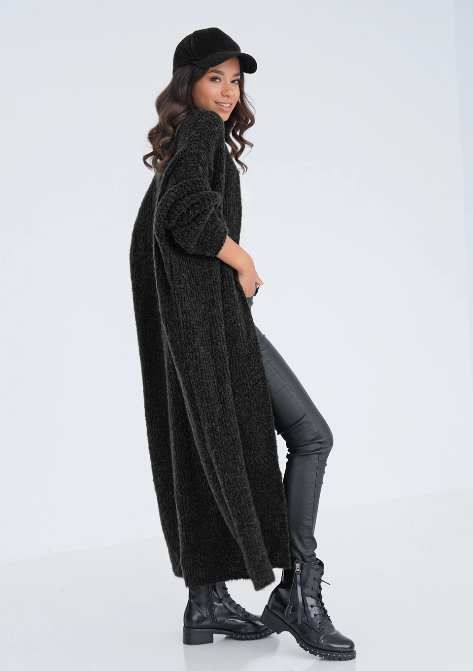 Riley - Black oversize sweatshirt cardigan