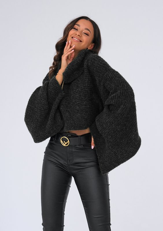 Hood Wrap - Knitted melange grey with a wrapping scarf