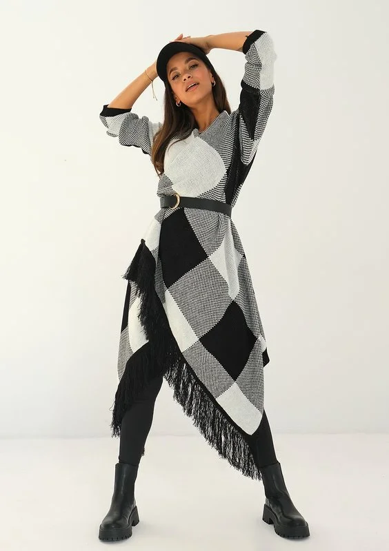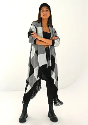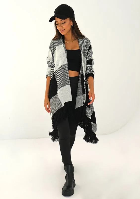 Lora - long black checked cardigan