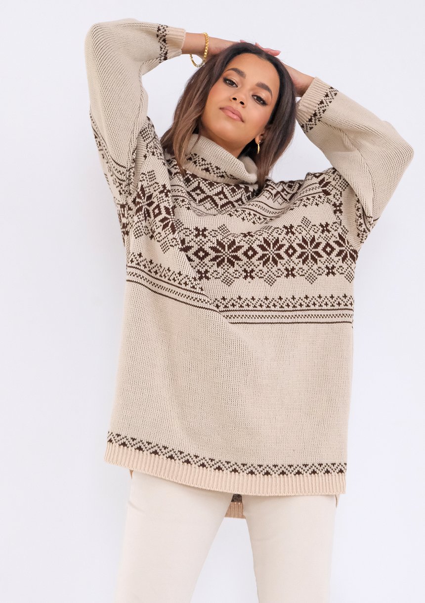 Stor - ecru oversize turtleneck sweater