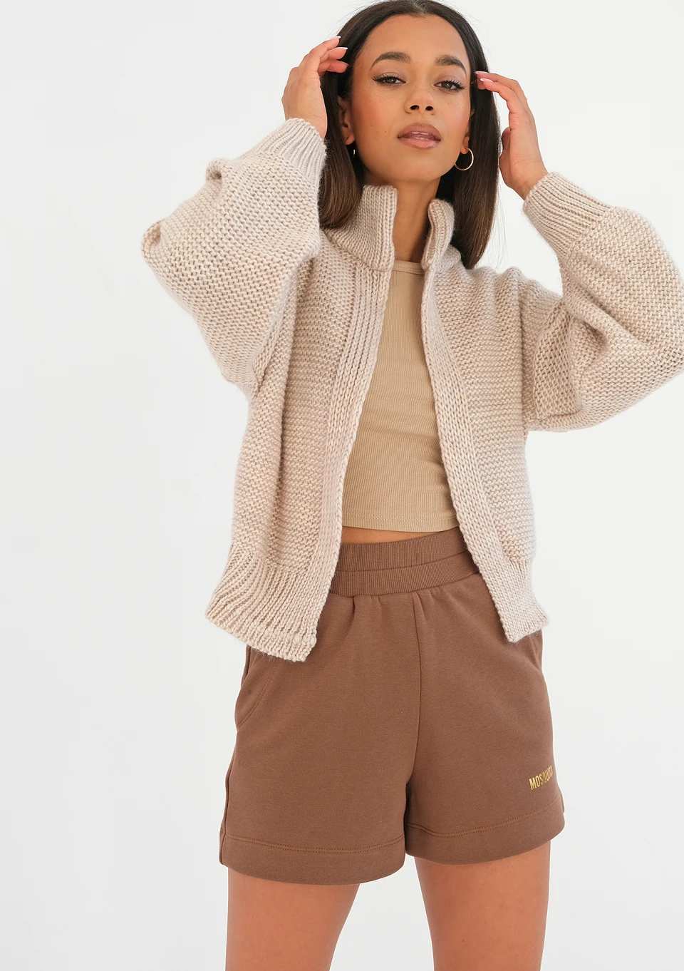 Kelie - Taupe knitted cardigan