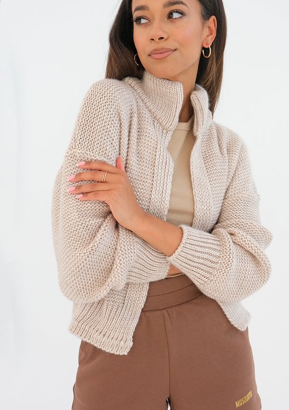 Celine - Short camel brown knitted cardigan