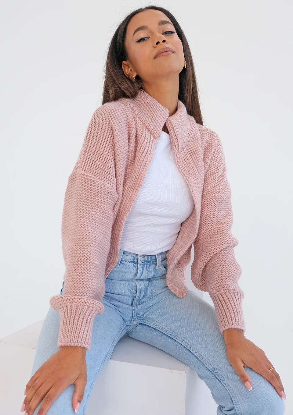 Celine - Short camel brown knitted cardigan