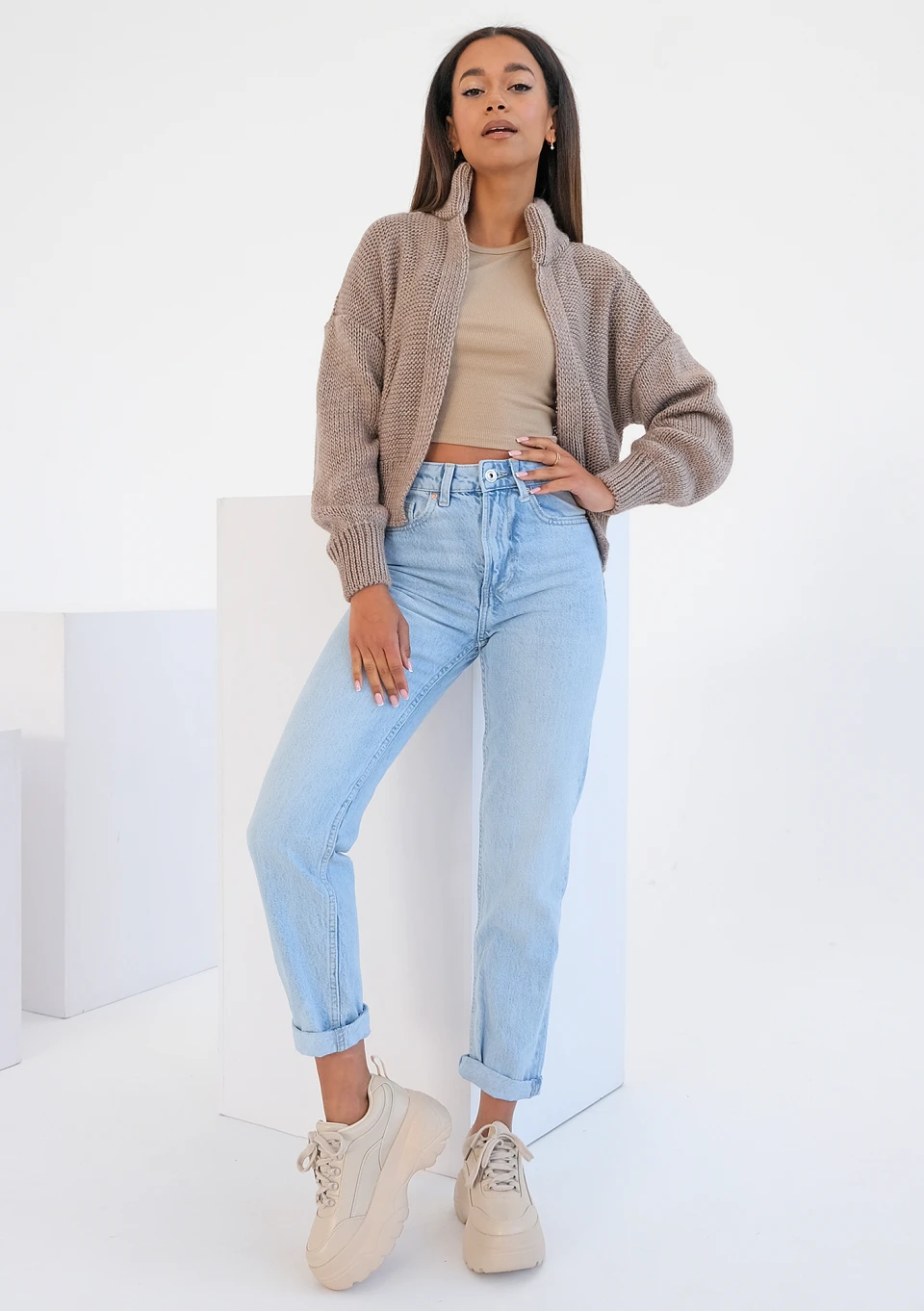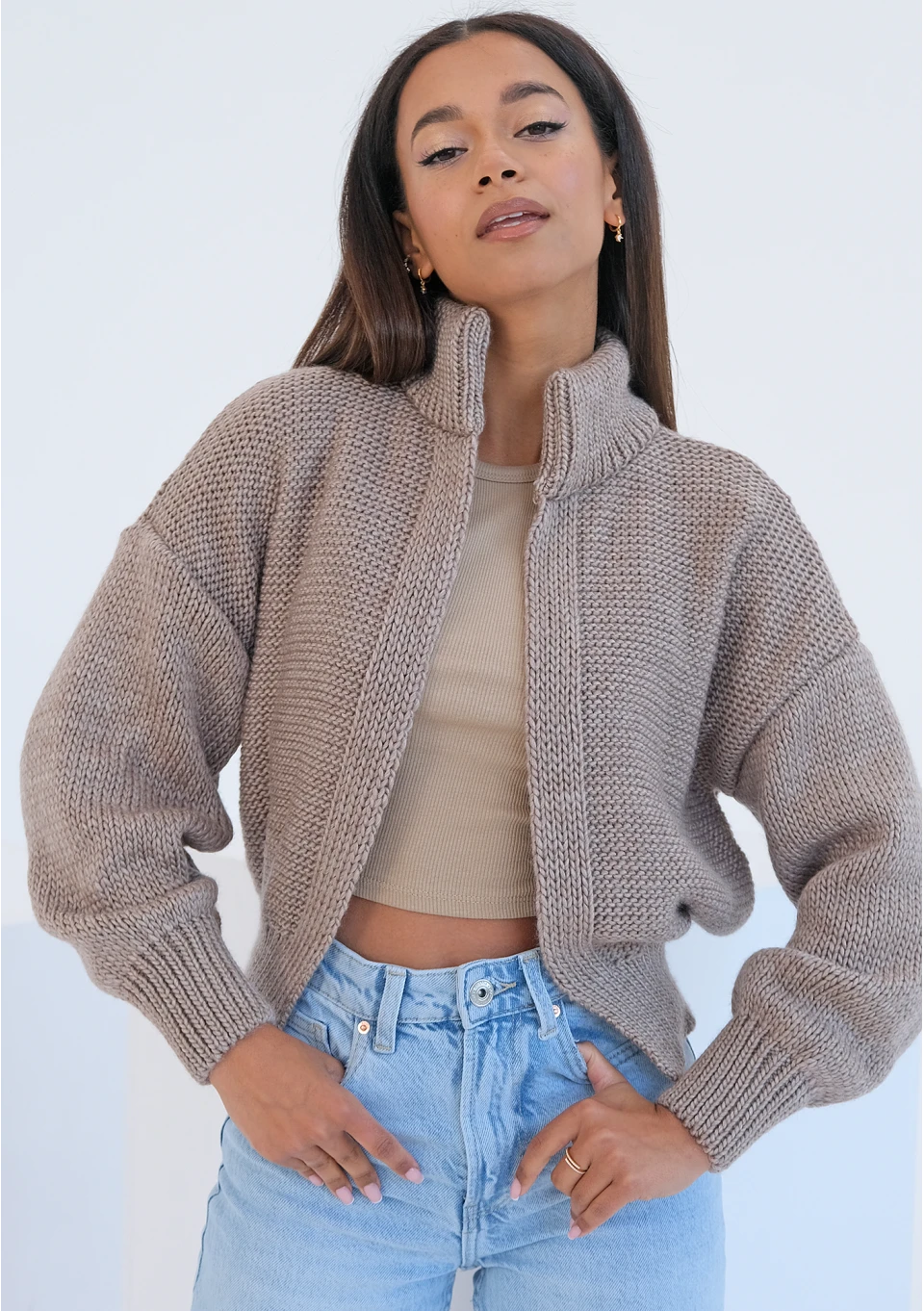 Celine - Short camel brown knitted cardigan