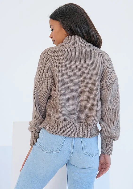 Jesse - Loose melange beige polo neck sweater