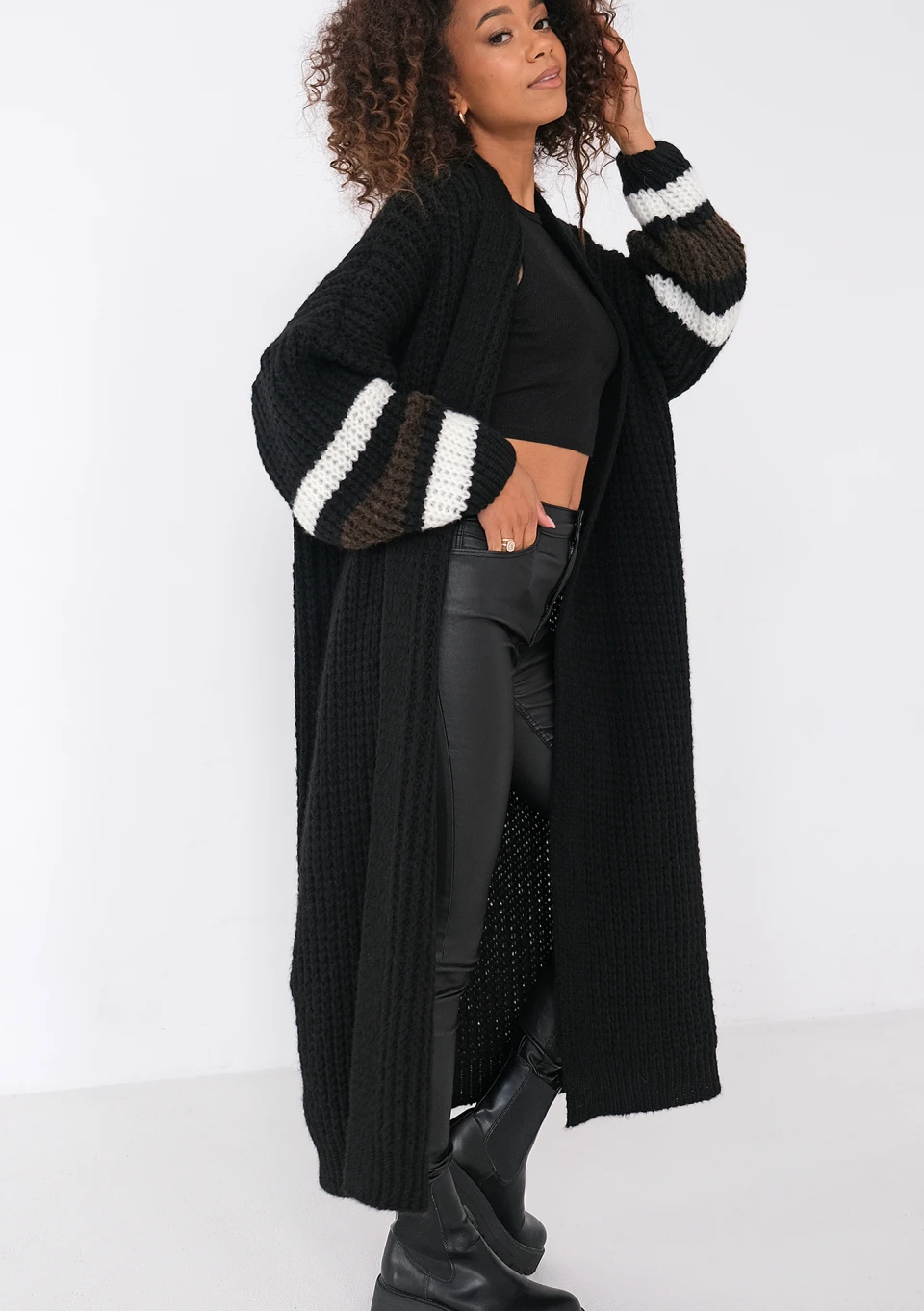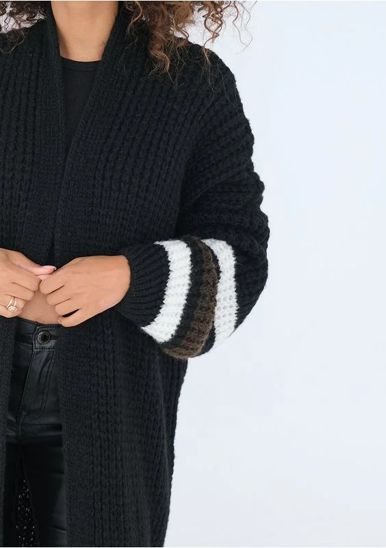 Vind - Long black cardigan in stripes