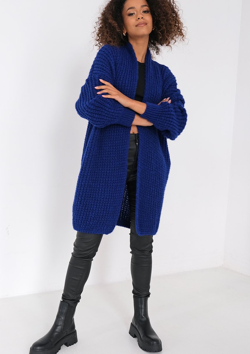 Vind - Long cobalt blue cardigan in stripes