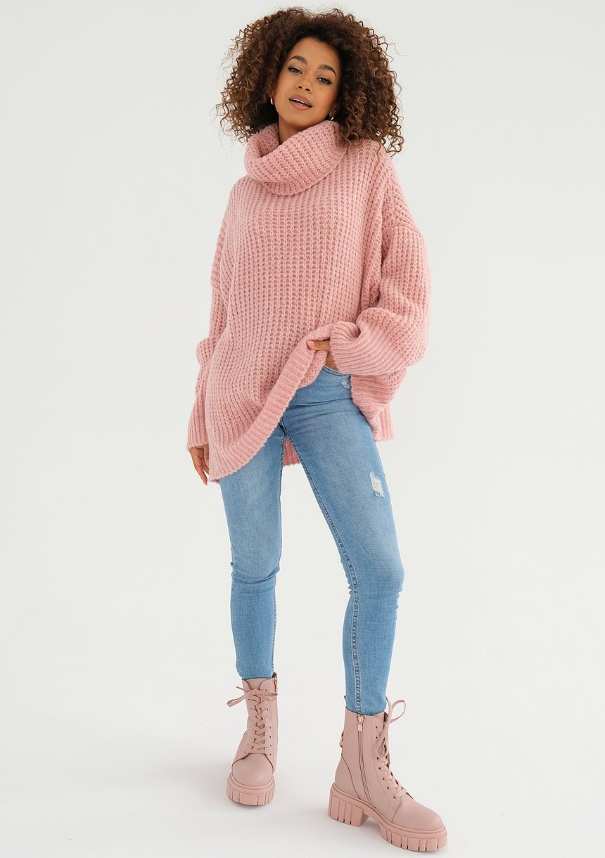 -30% Stor - Powder pink oversize turtleneck sweater zł189.99 zł132.99 Lowest price from the last 30 days zł189.99