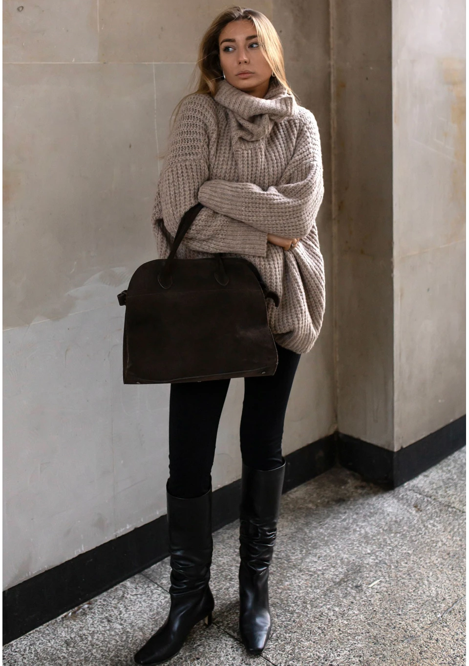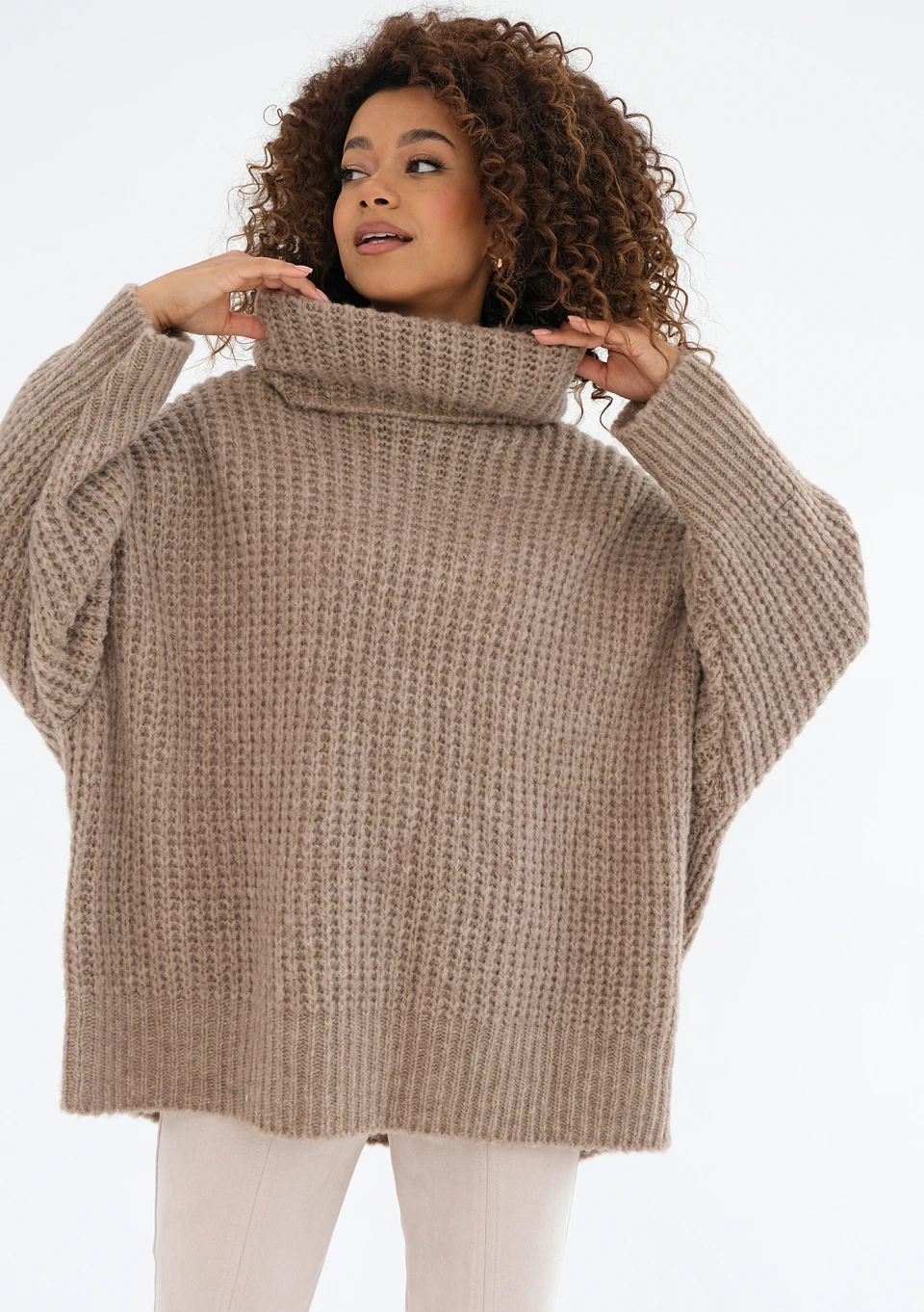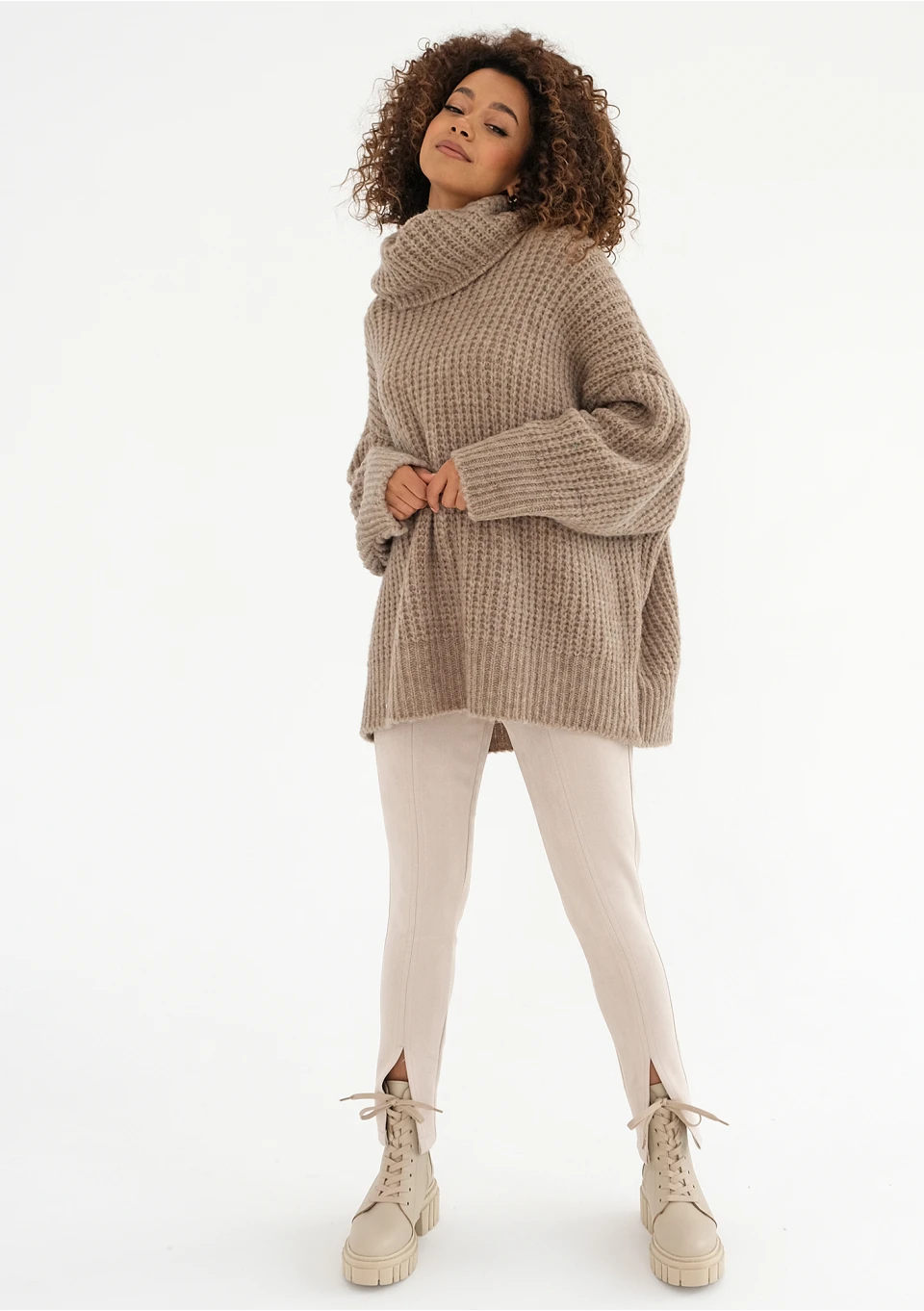 -20% Stor - Latte beige oversize turtleneck sweater zł229.99 zł183.99 Lowest price from the last 30 days zł229.99