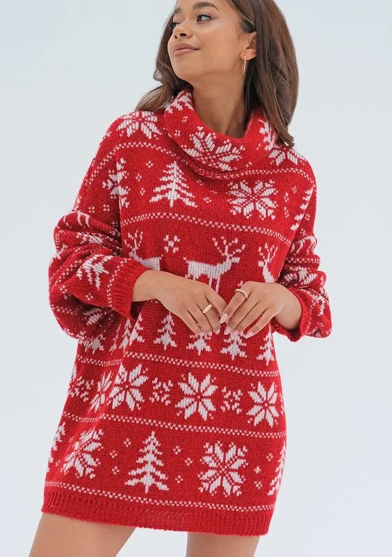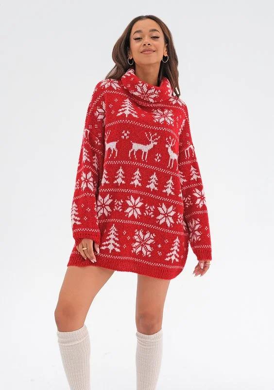 Freez - Red oversized turtleneck sweater