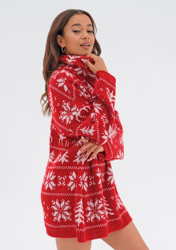 Lodge - Brown sweater with a jacquard pattern "ski club"