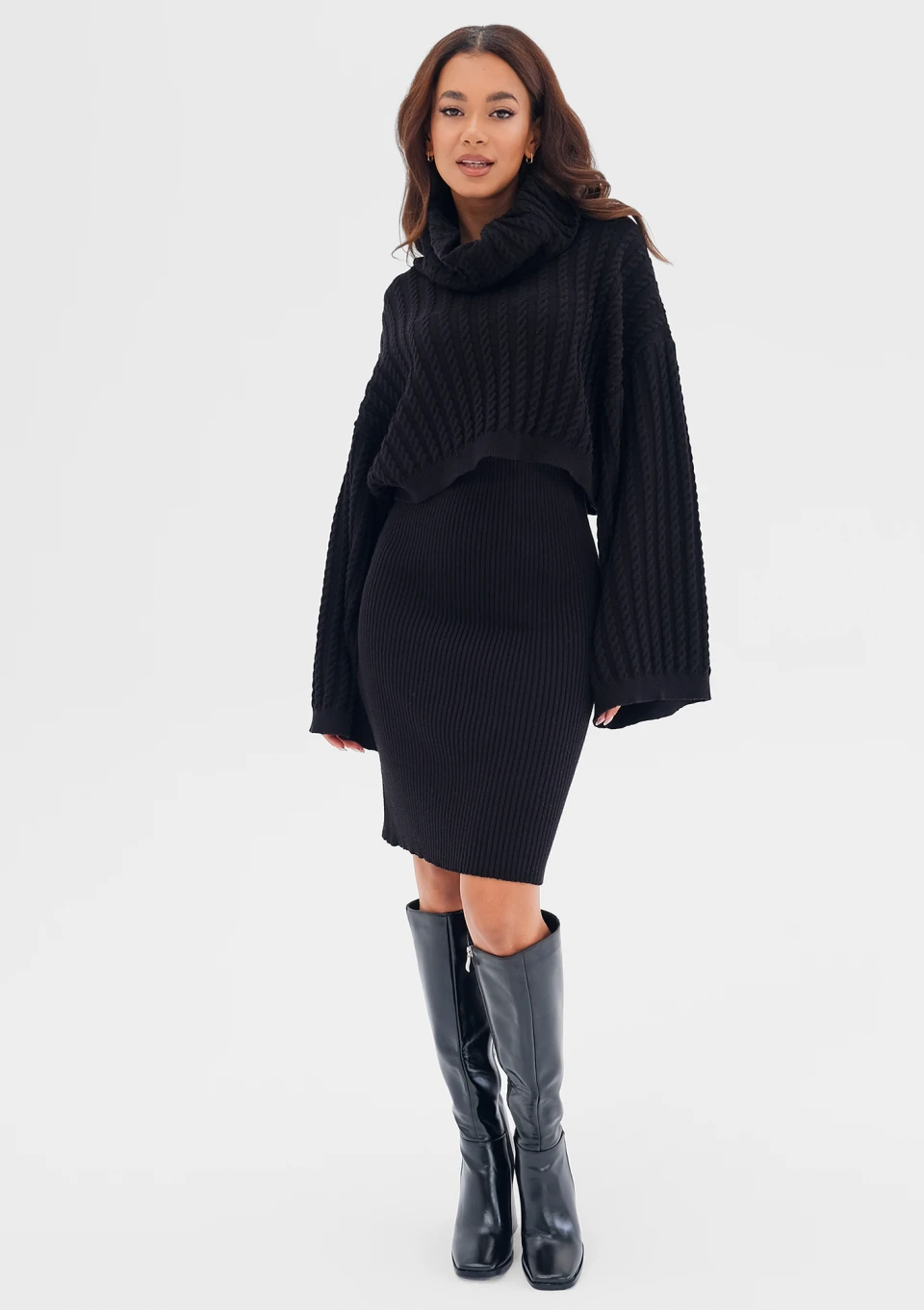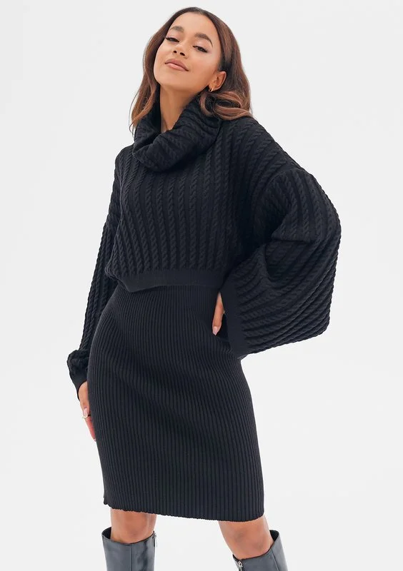 Roxen - Black knitted midi skirt