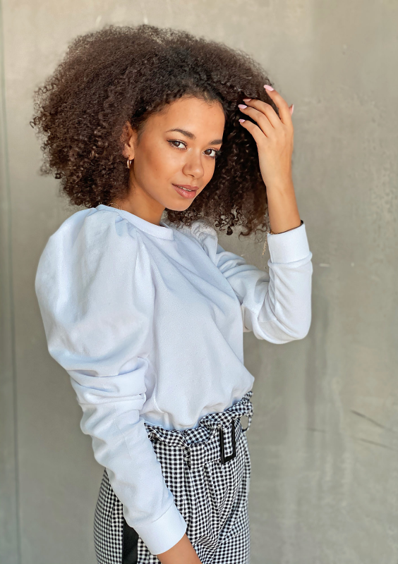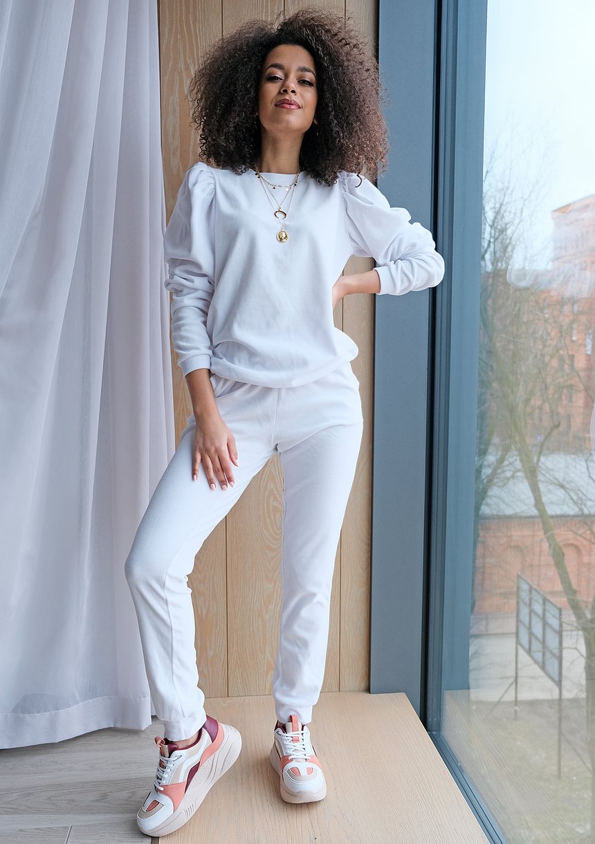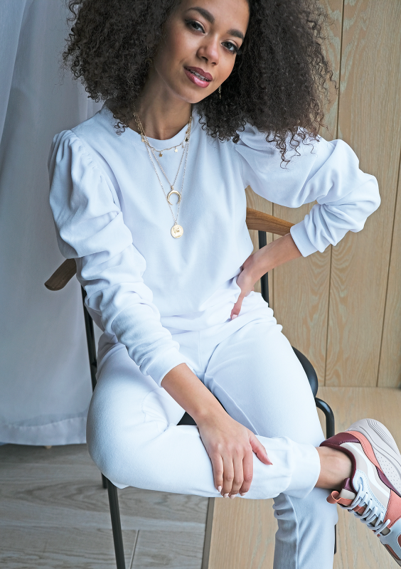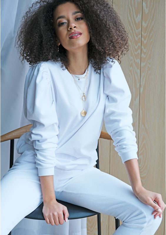 WHITE VELVET SWEATSHIRT WITH PUFF SHOULDERS