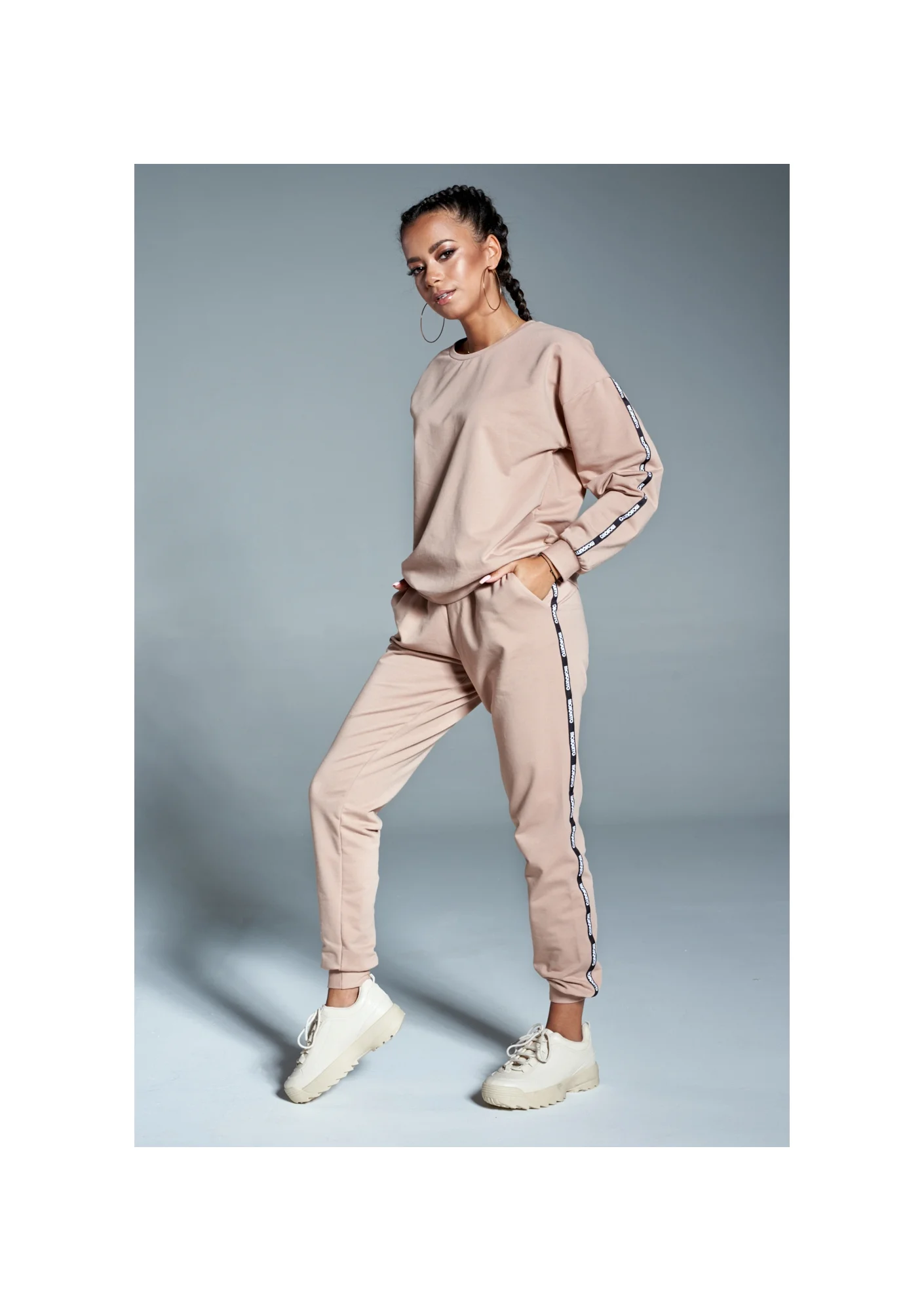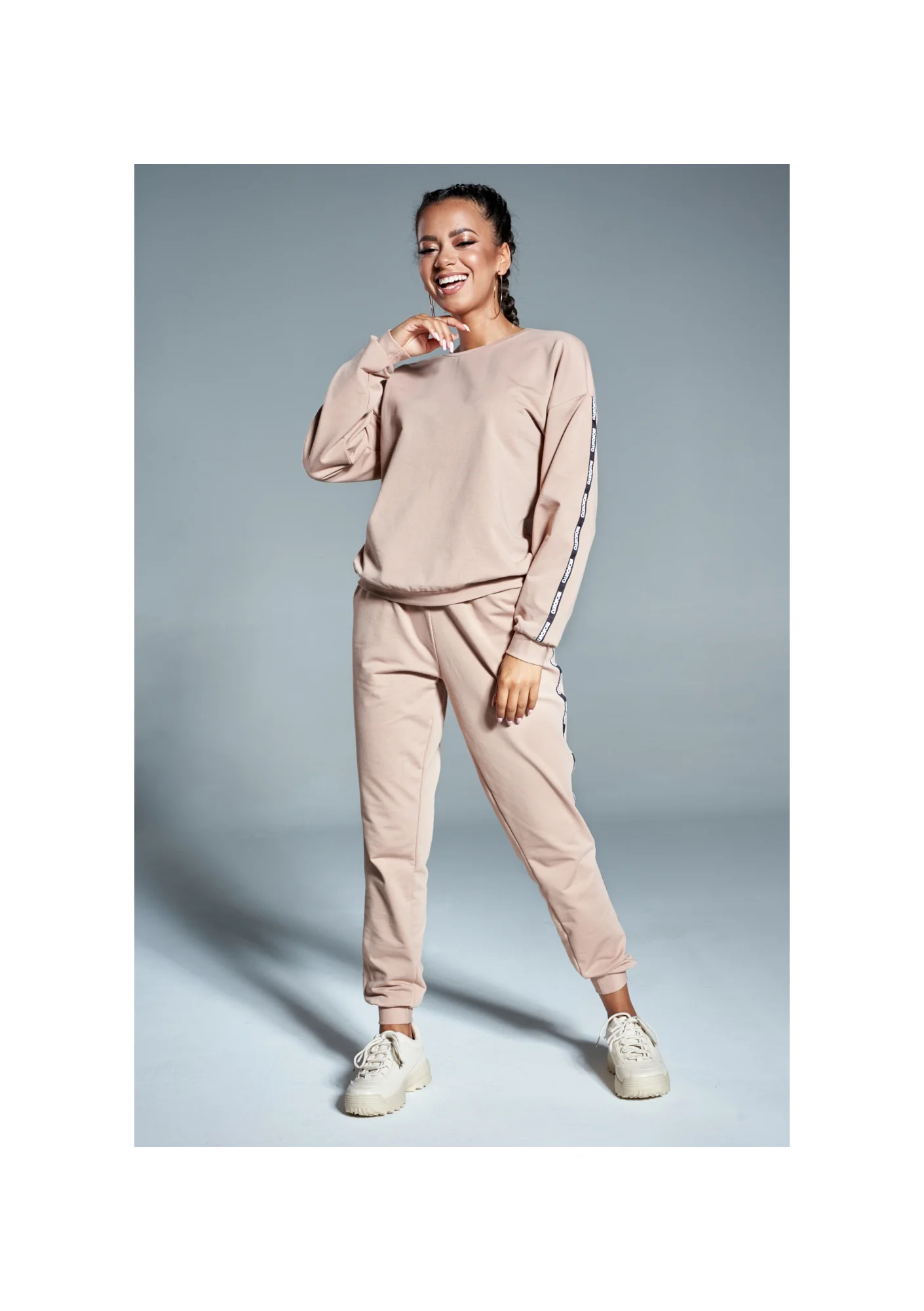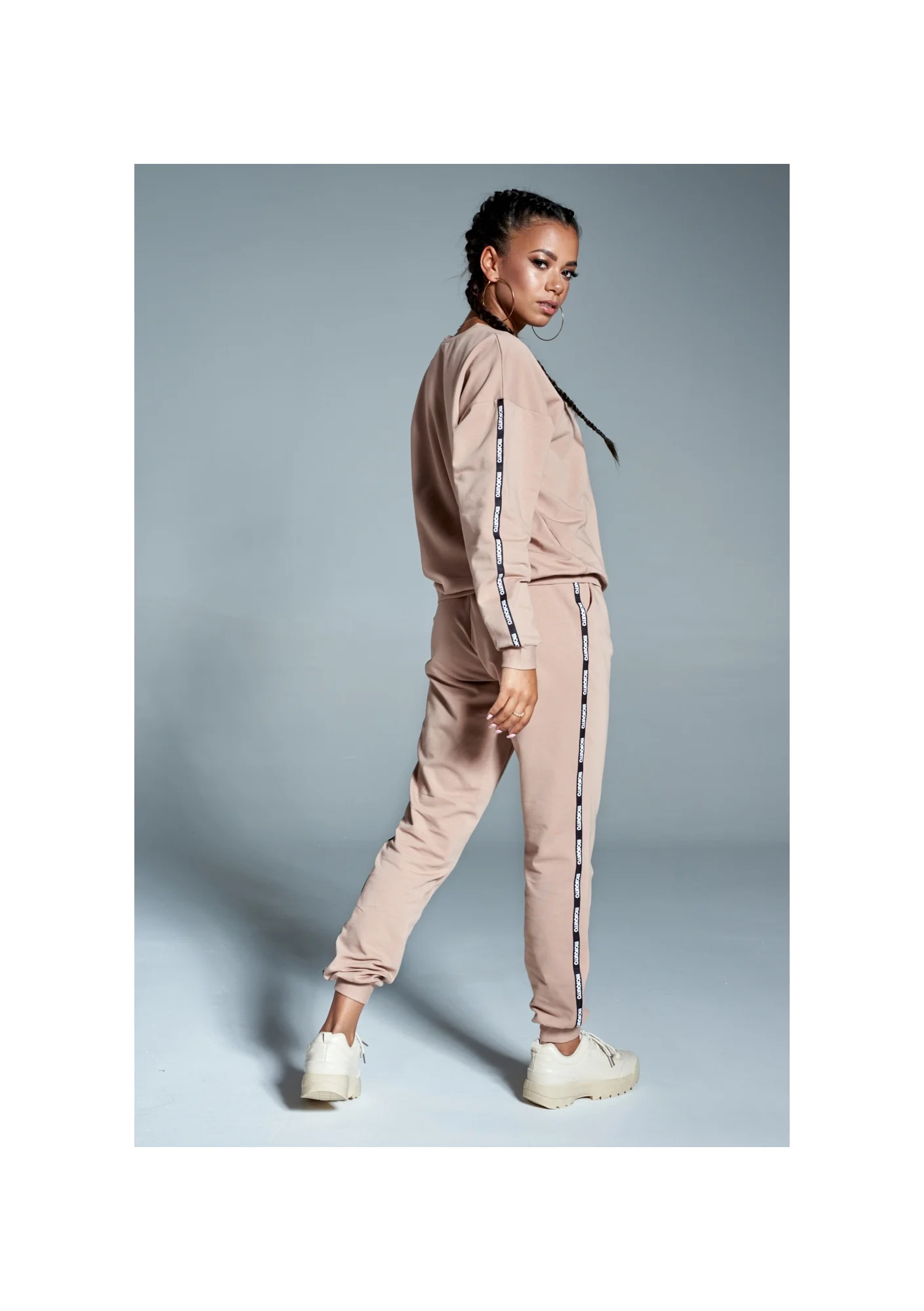 BEIGE TRACKSUIT WITH BRAND LOGO STRIPES ILM