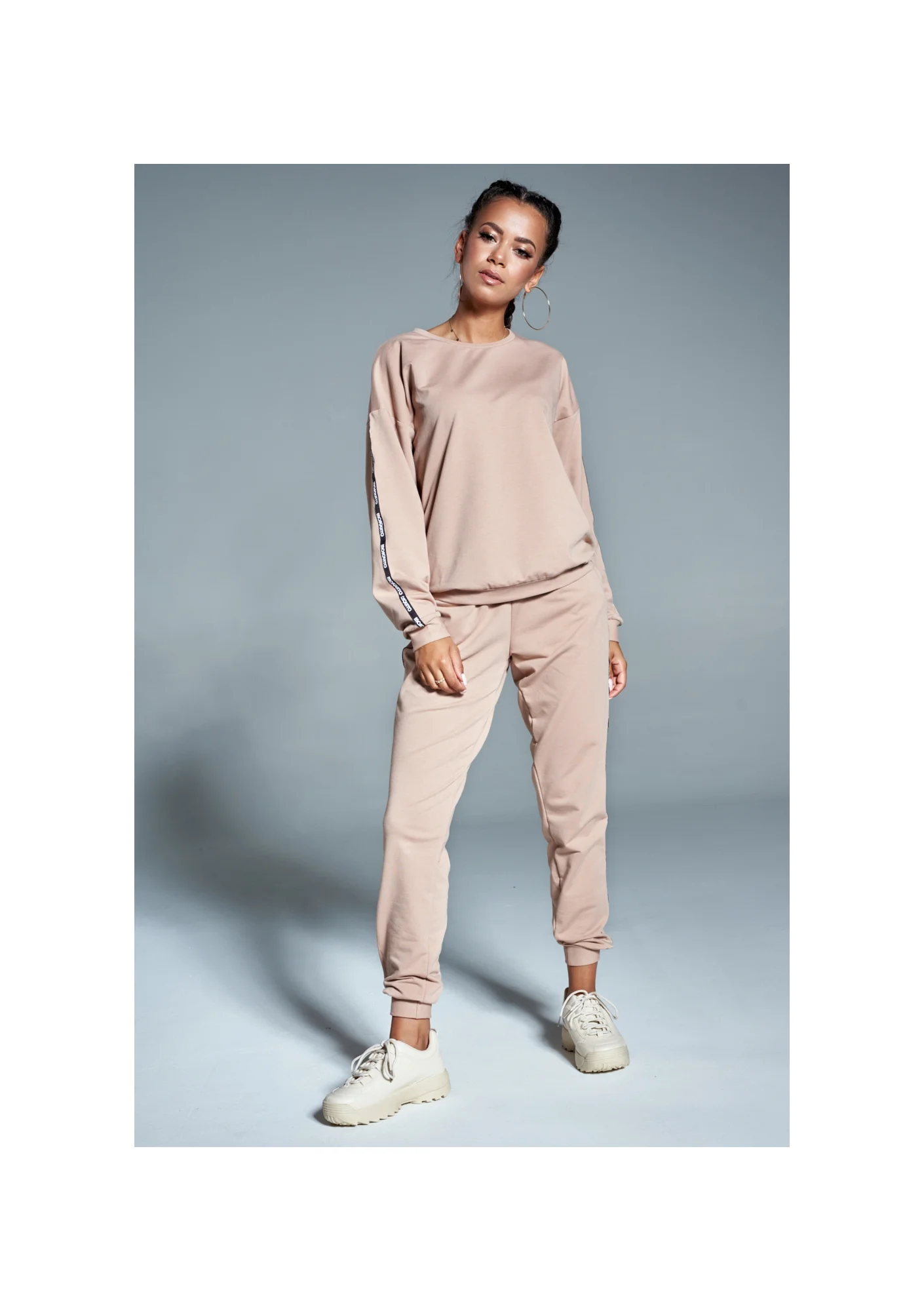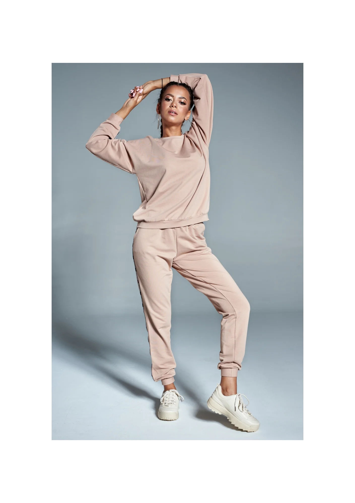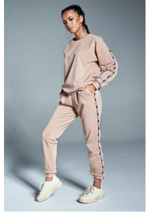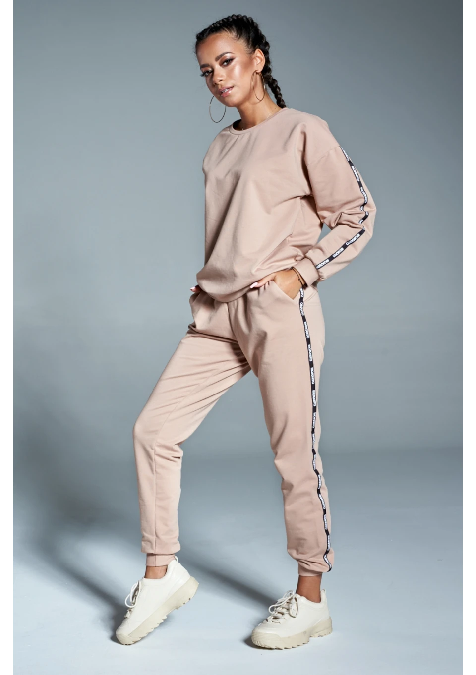 BEIGE TRACKSUIT WITH BRAND LOGO STRIPES ILM