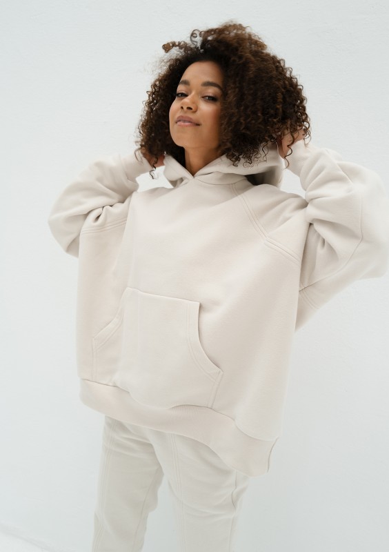 Hoody - Beige oversize hoodie with an embroidered logo