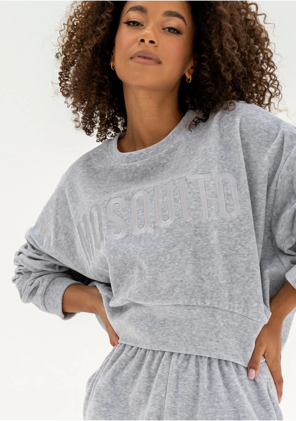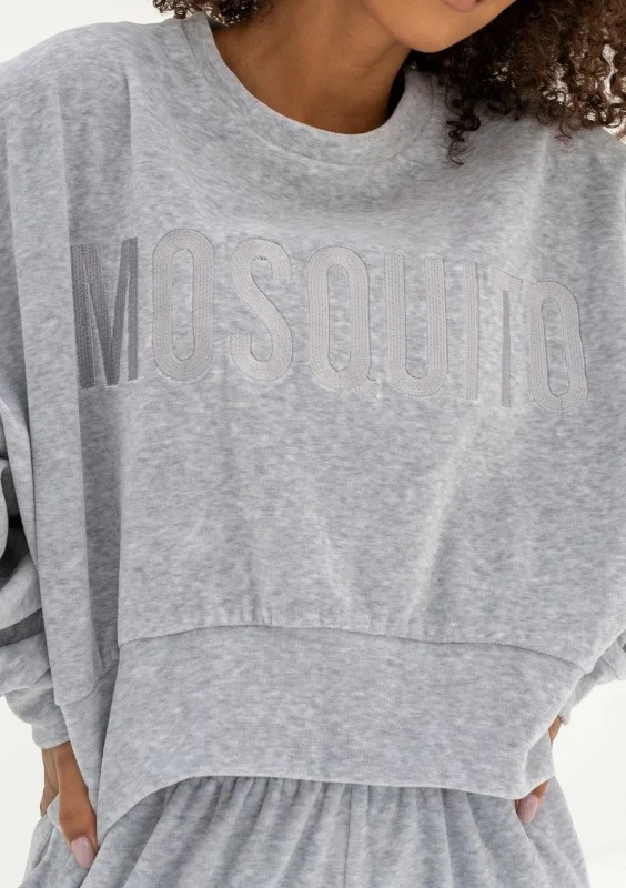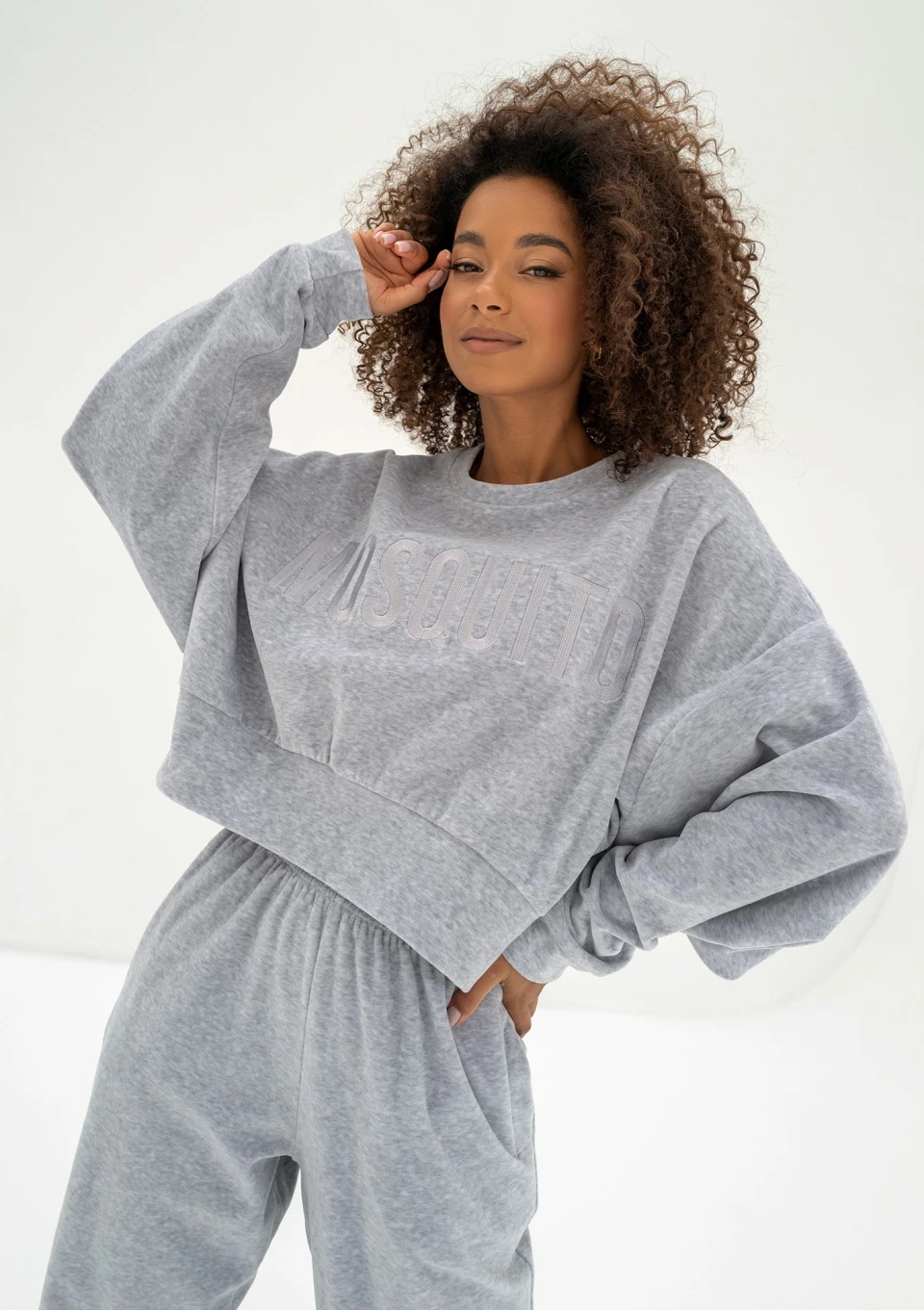 Shore Velvet - Melange grey velour sweatshirt with a logo