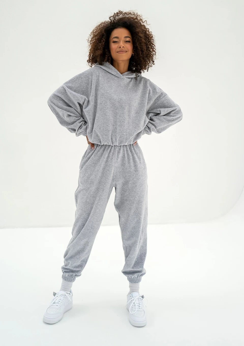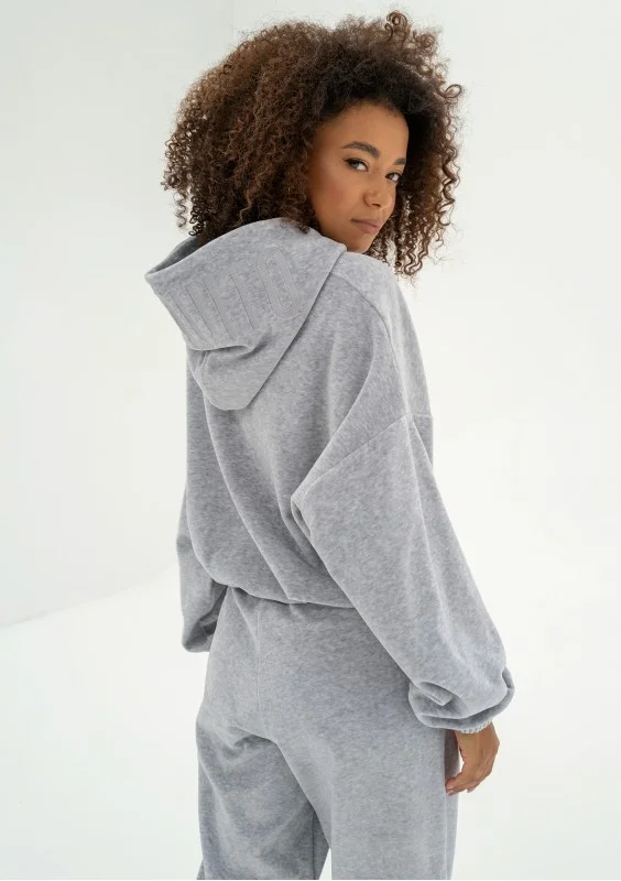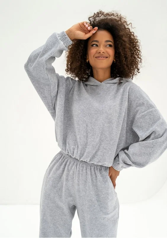 Nemi Soft - Beige knitted jumper with a pocket and a hood