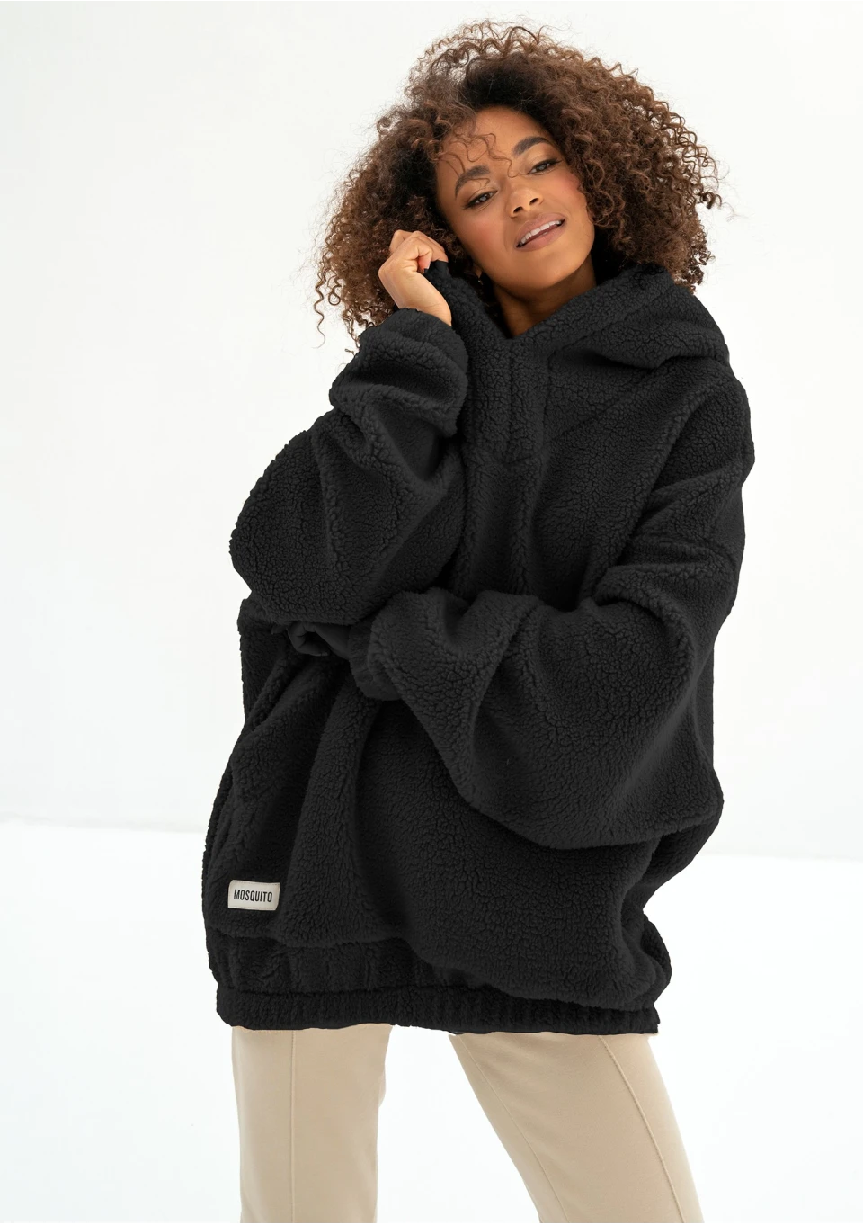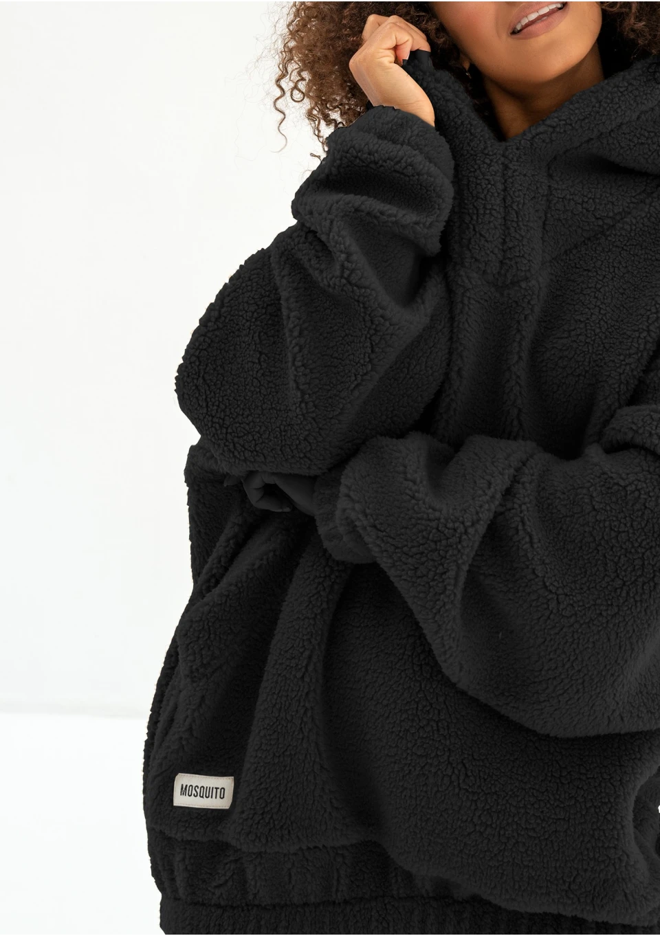 Ozzy - Black faux fur oversize hoodie