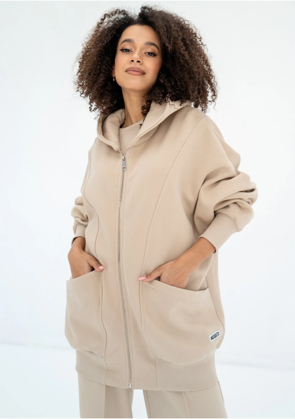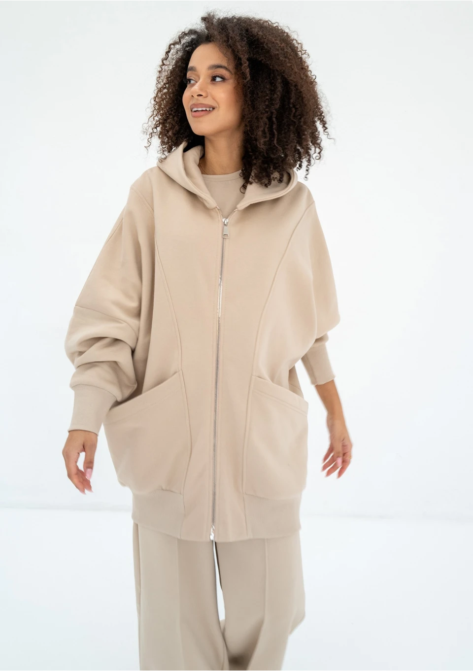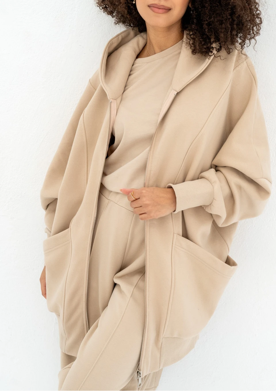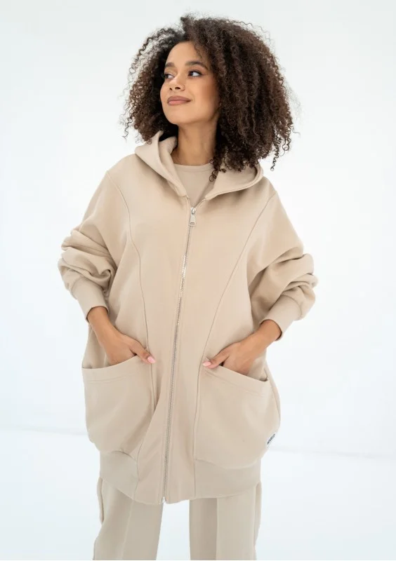 Amala - Sand beige oversize zipped hoodie
