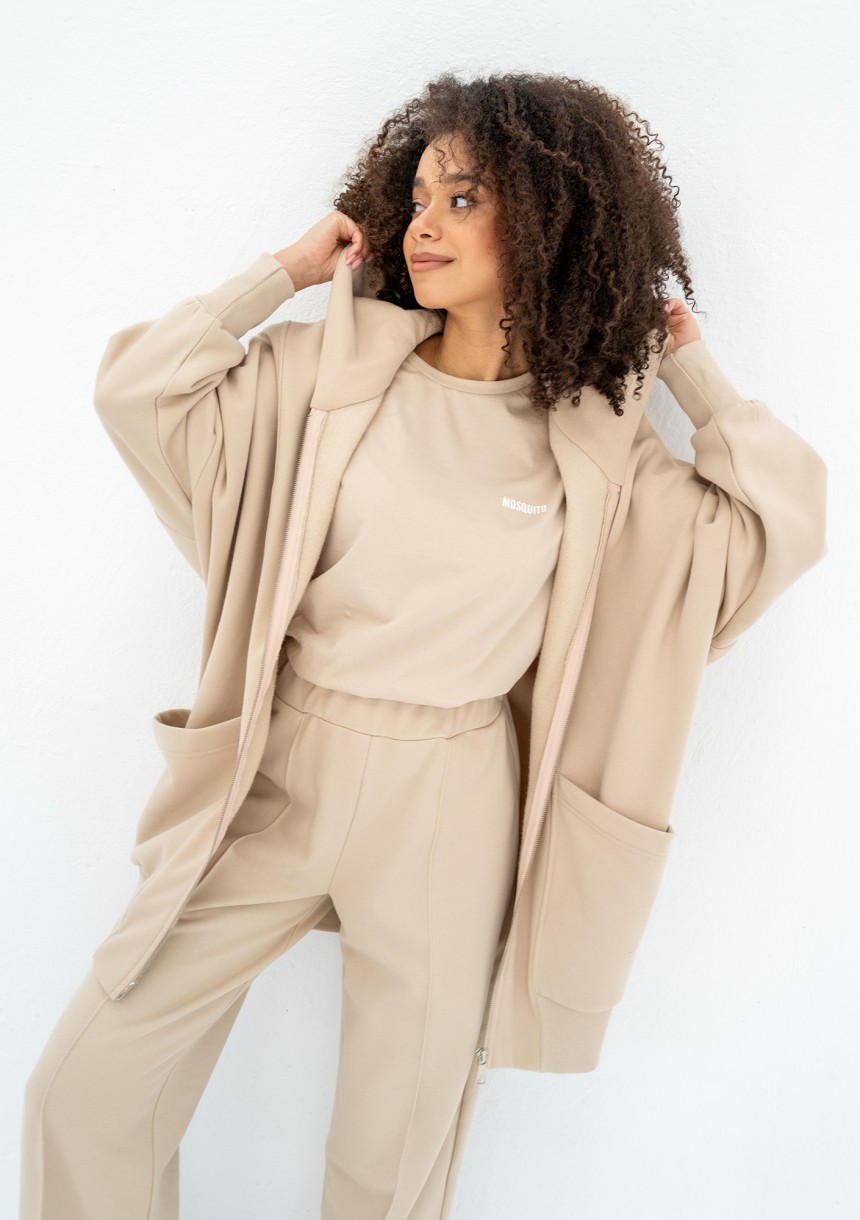 Amala - Sand beige oversize zipped hoodie