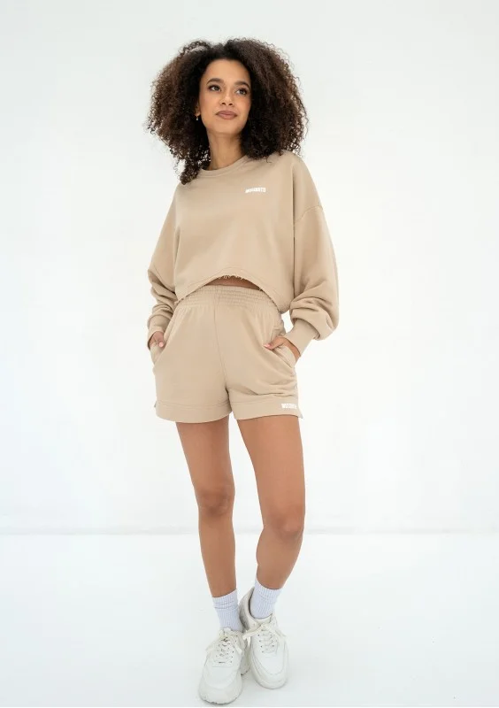 Shore Velvet - Taupe velour sweatshirt with a logo
