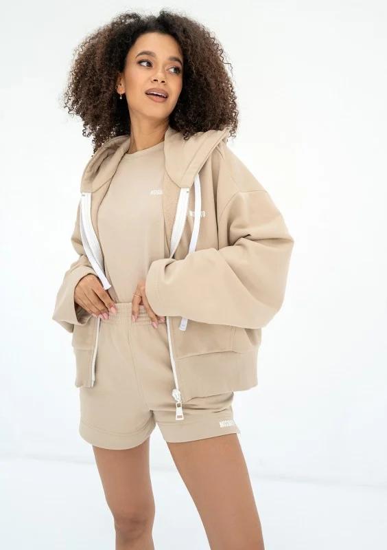 Calm - Short beige hoodie with strings