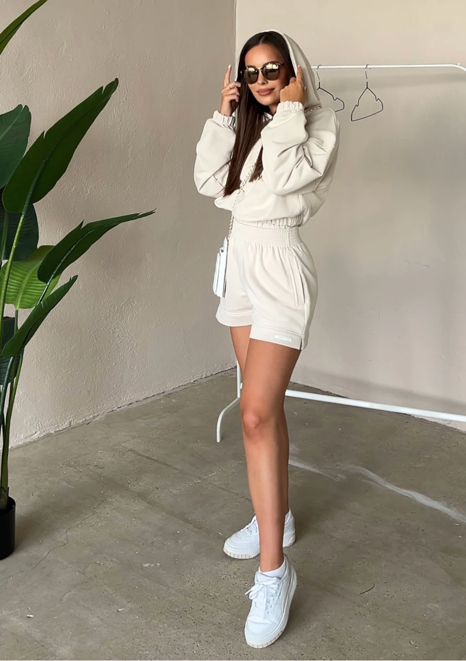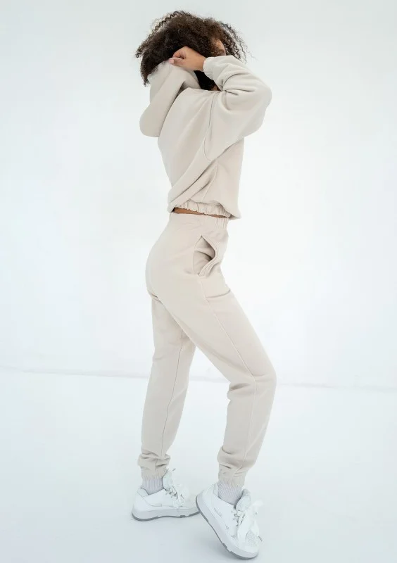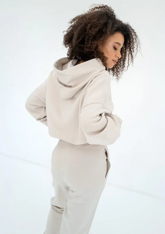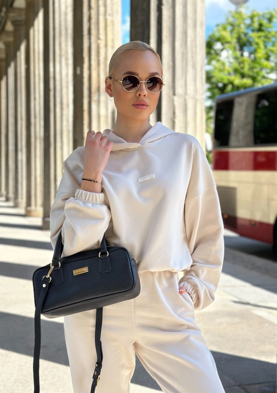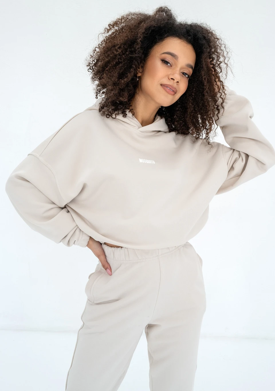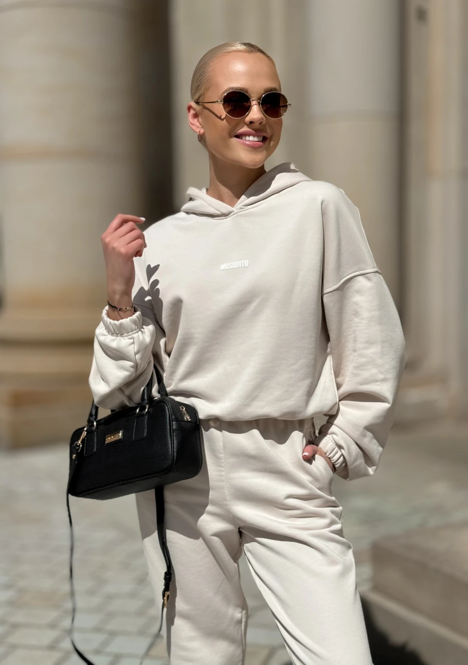 Shore Velvet - Taupe velour sweatshirt with a logo