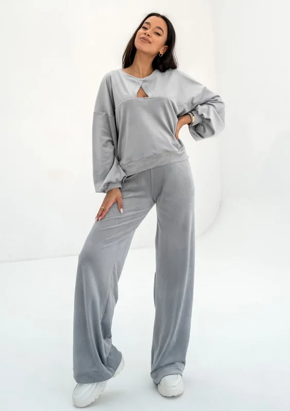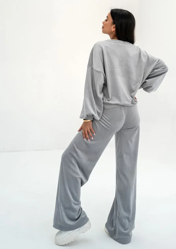 Delsy Velvet - Misty grey velvet sweatshirt