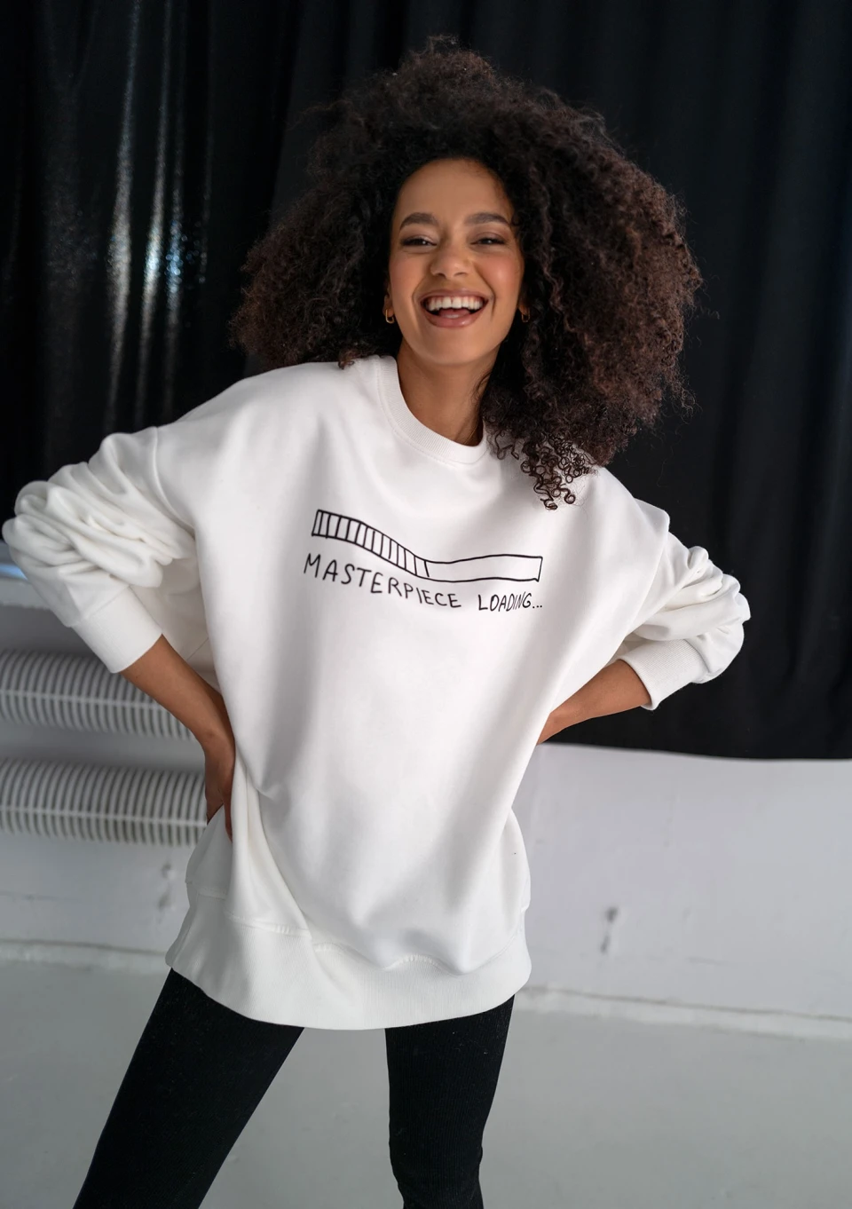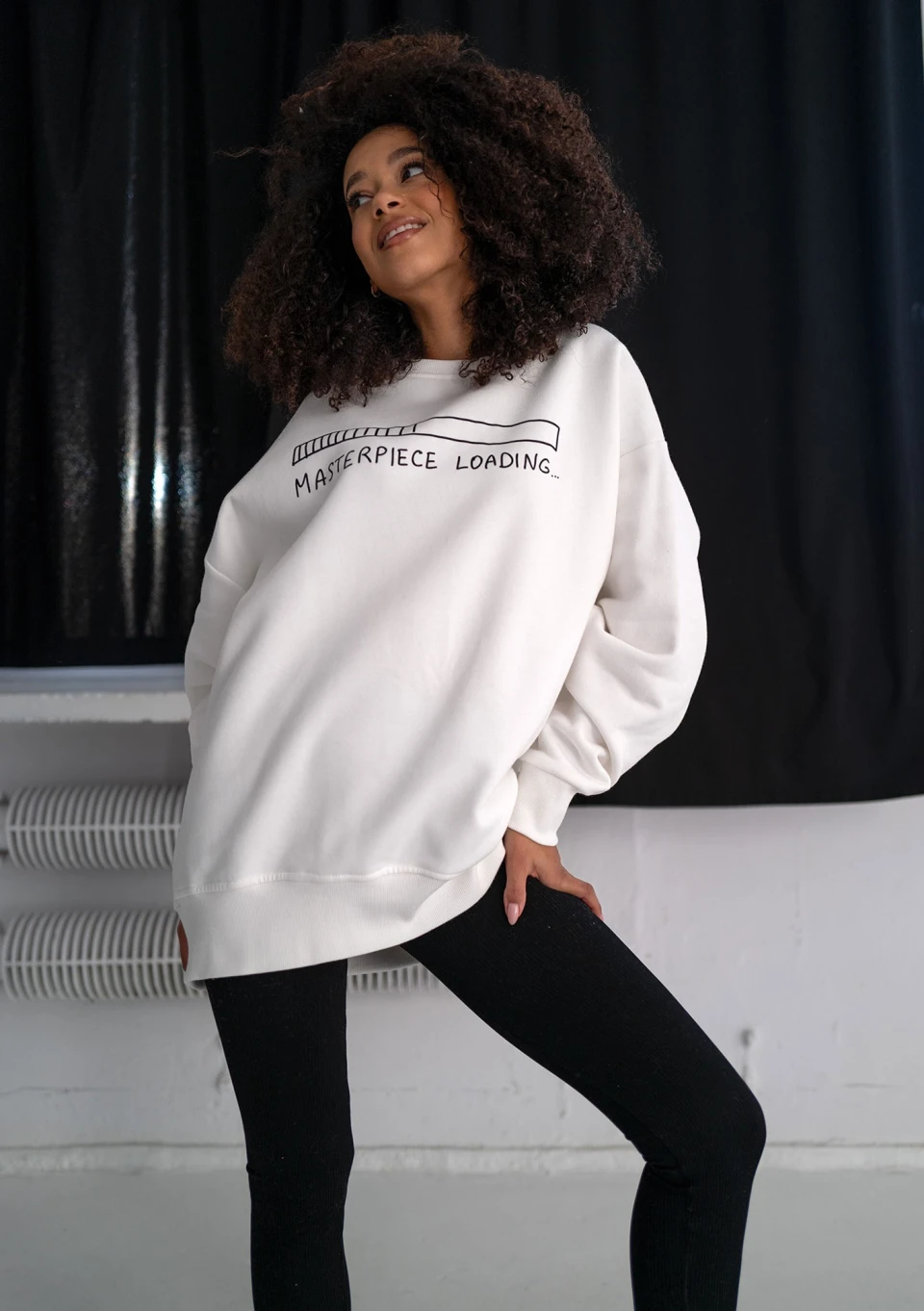Cozy Flow - Creamy oversized cotton v-neck sweatshirt