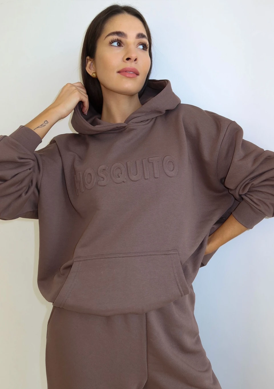 Calm - Short coffee brown hoodie with strings