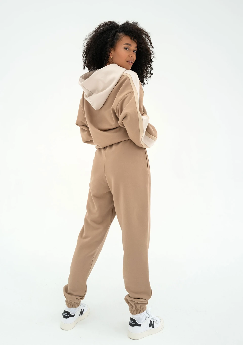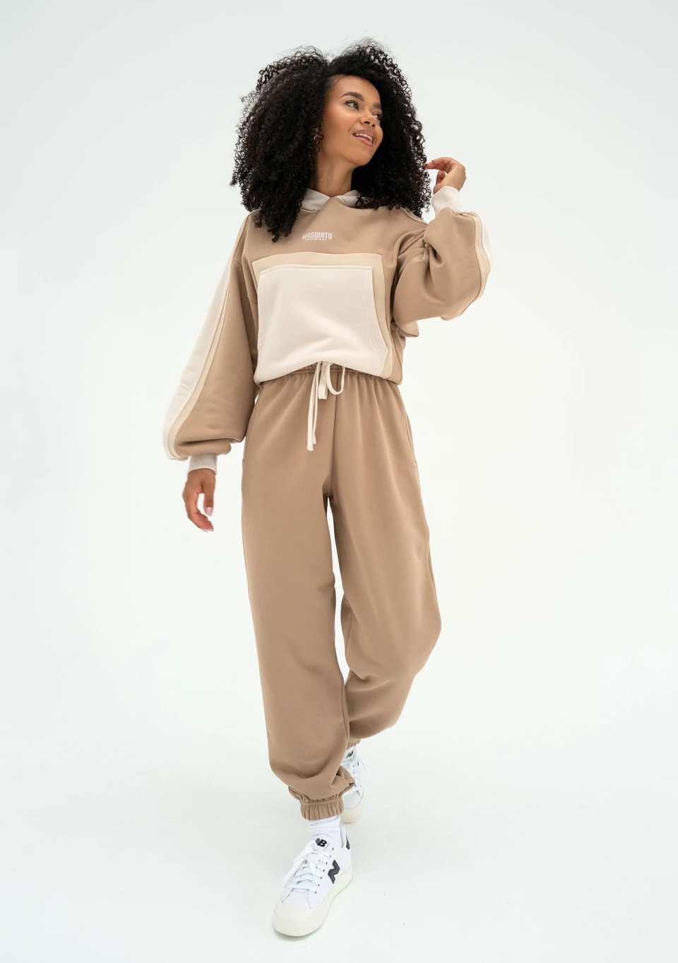 Shore Velvet - Taupe velour sweatshirt with a logo